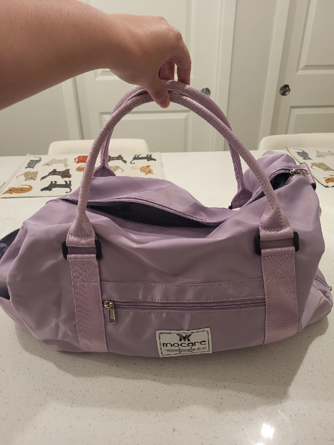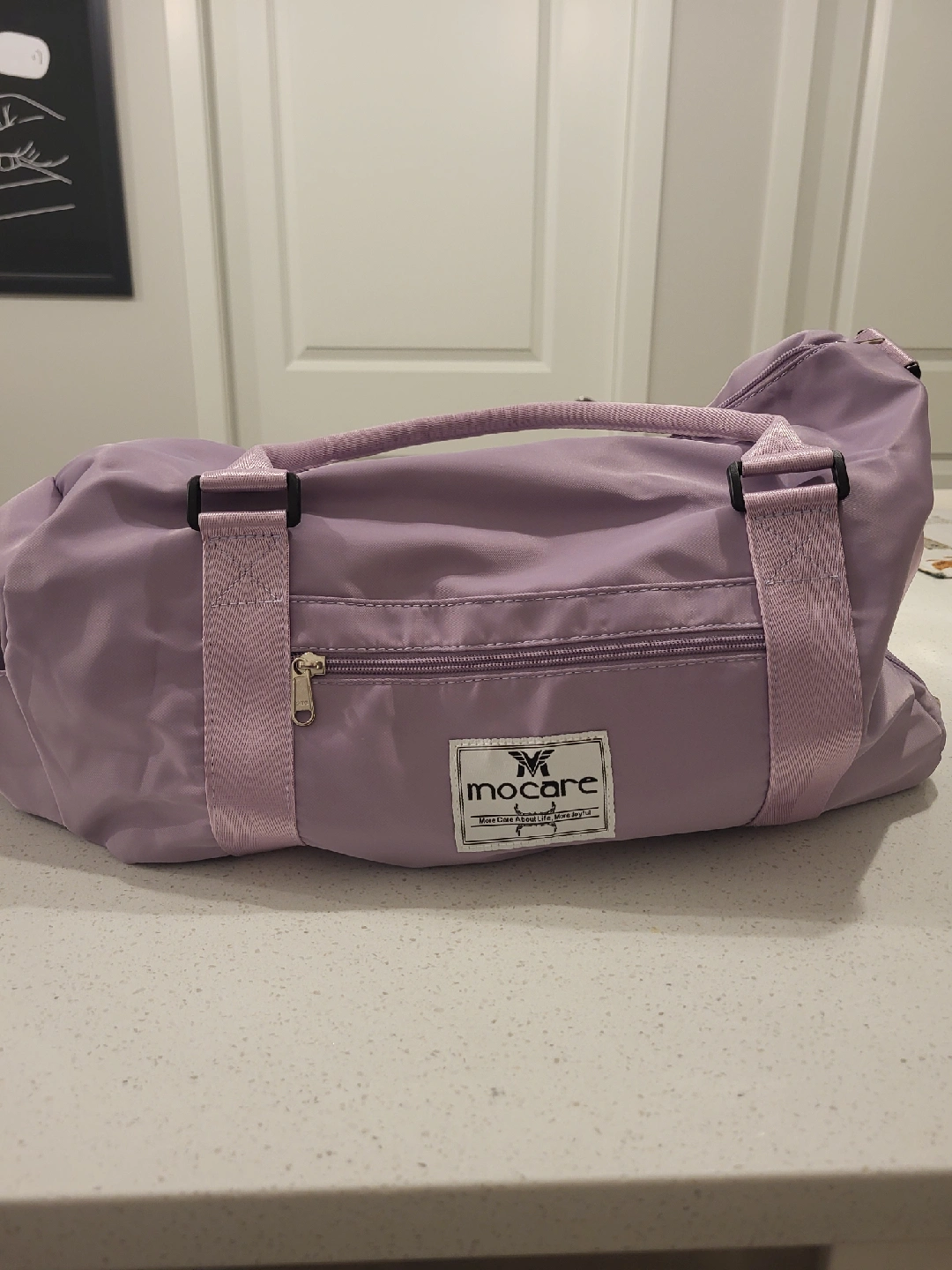 Selling a cute Mocare duffle bag in a lovely lavender colour! It's in great condition and perfect for the gym, travel, or everyday use. Lots of space inside with a many zippered pockets for organization both inside and out!