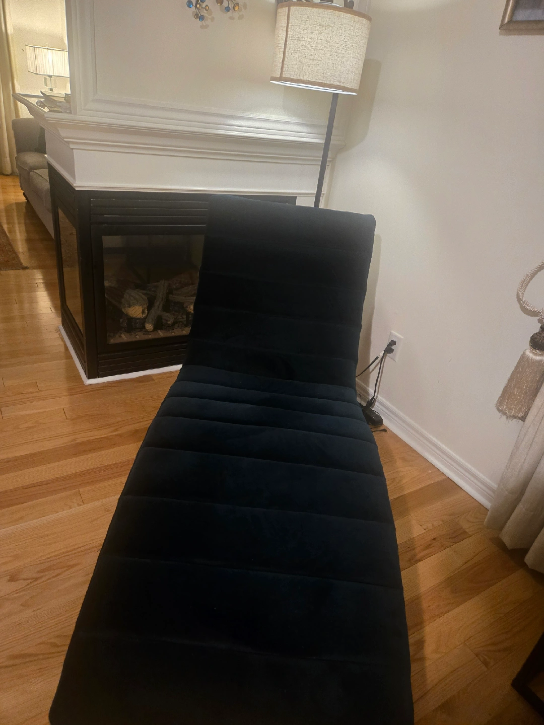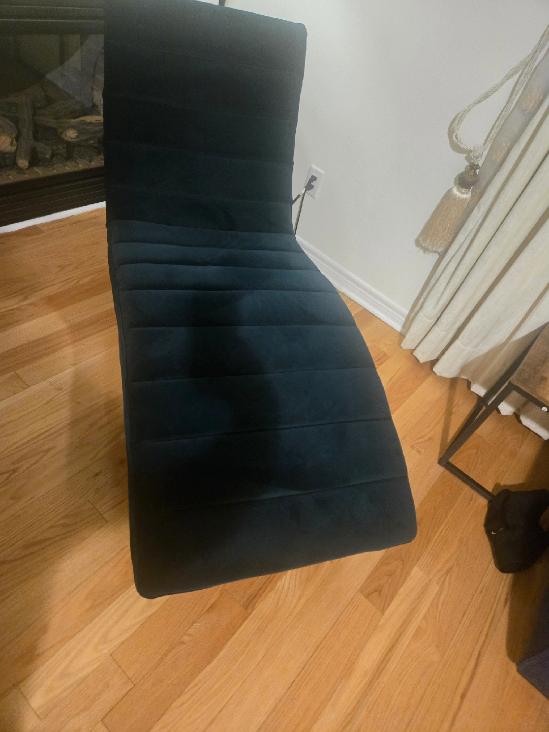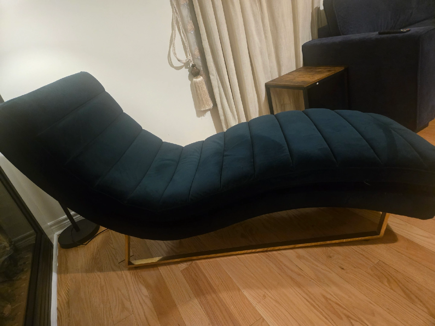 Looking to add a touch of elegance to your space? I have a beautiful Emerald green chaise lounge chair available. It's barely 2 months old and already looking for a new home. Perfect for relaxing and adding a stylish accent to any room!