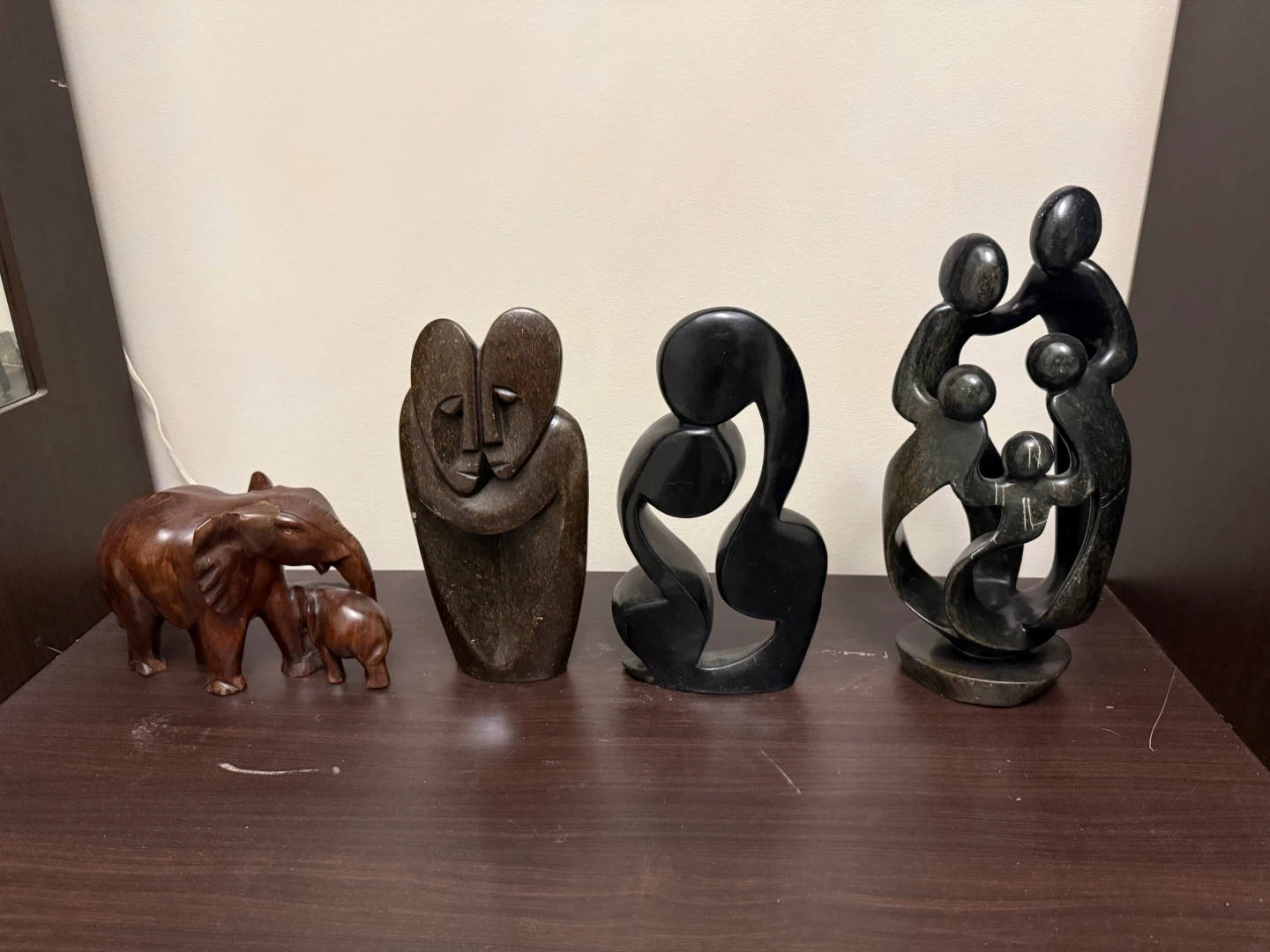 Selling a set of stone sculptures. These are beautiful pieces that would look great in any home. They are in good condition.