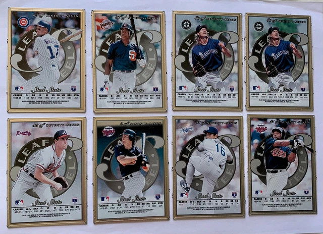 Dive into the nostalgia of the 1996 baseball season with this exclusive collection of 24 Leaf Steel Baseball Trading Cards. A must-have for collectors and enthusiasts alike, each card is a testament to the game's golden era, featuring Major League Baseball's finest players and moments. Crafted with durability in mind, these metal cards from Leaf are a unique addition to any sports memorabilia collection. Whether you're looking to complete your 1996 set or simply own a piece of baseball history, these cards offer a perfect blend of style and sentiment. Individual cards available at $2 each. Let me know if you're interested!