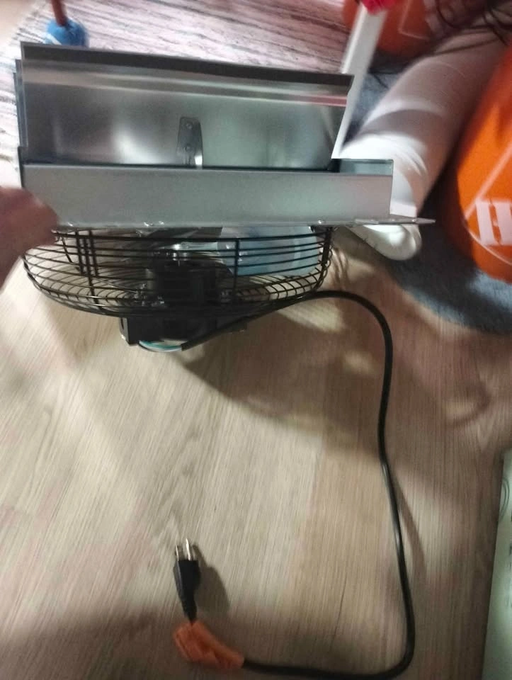 Vent fan for kitchen or garage room. Size 28 cm x 28cm. No speed control.