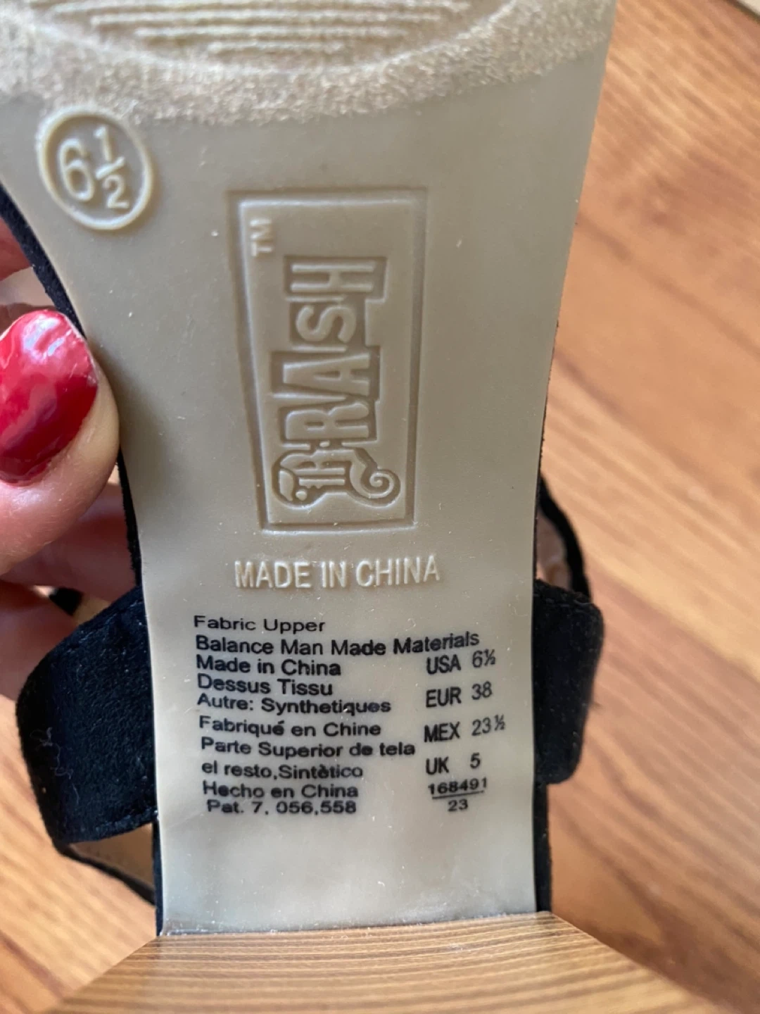 Selling a pair of Smash heeled sandals in black. size 6.5. These sandals are in very good condition , they can be elegant with a dress and casual with pants. They are very comfortable for long time wearing especially for work and office environment. Easy to walk with. From pet/smoke free home. Please check my other listings