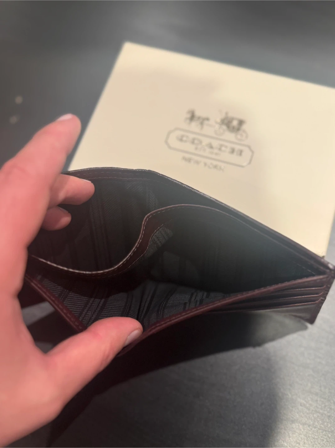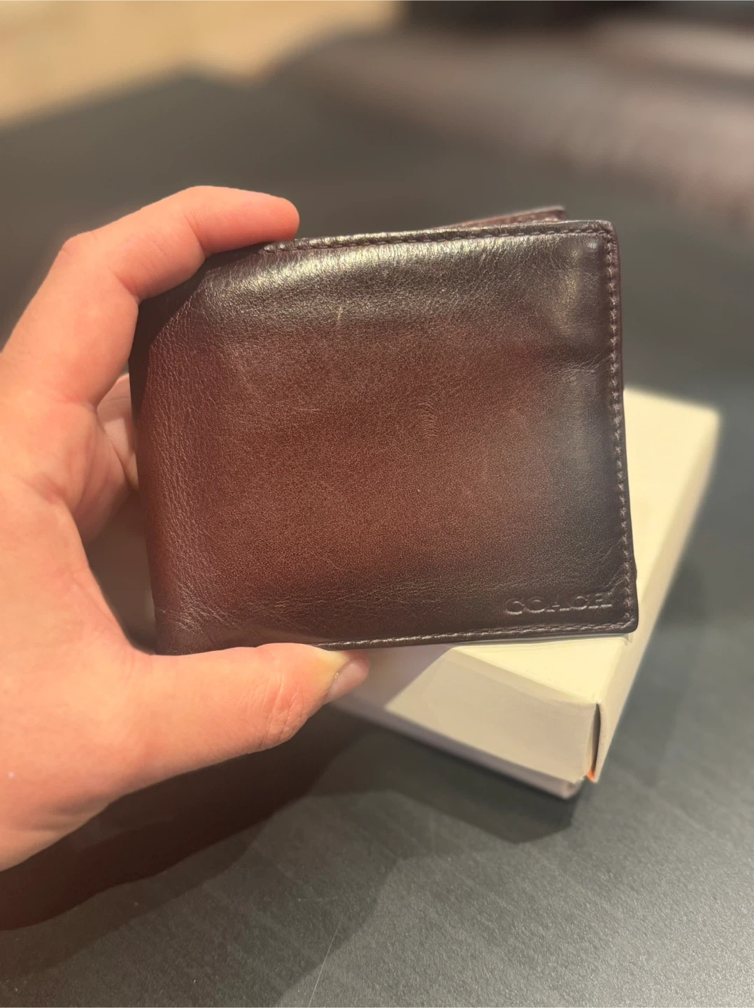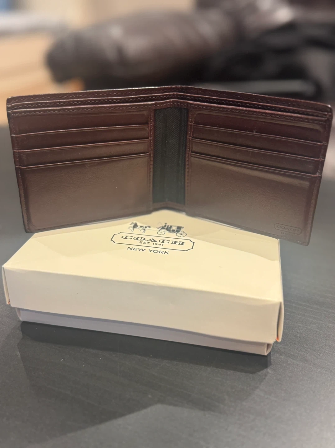 Selling a Coach brown leather wallet. It comes with the original box! Also includes a Coach keychain.