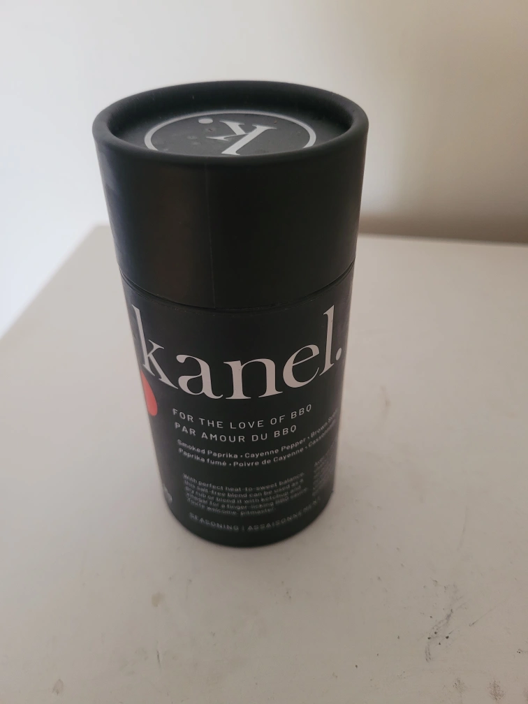 Selling a Kanel BBQ seasoning blend! It's perfect for adding a smoky and spicy kick to your grilling. The ingredients include smoked paprika, cayenne pepper, and brown sugar for a sweet and savoury balance. This seasoning is great for ribs, chicken, or veggies