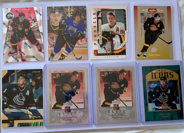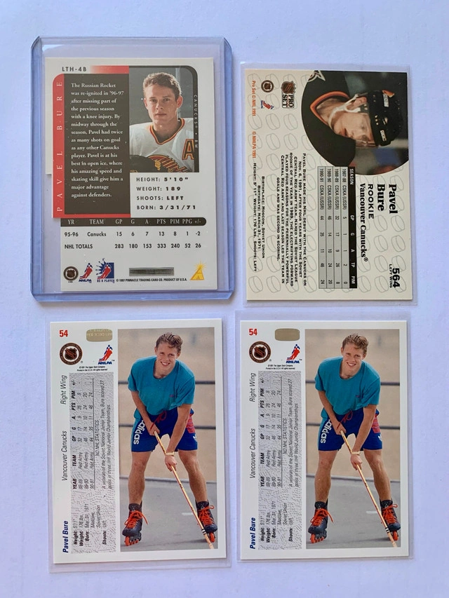 Capture a piece of ice hockey history with this autographed card featuring the legendary Pavel Bure, alongside an assortment of rookie and subset cards. Whether you're a dedicated fan of the Vancouver Canucks, the Florida Panthers, or the NHL at large, these cards serve as a tribute to one of the sport's most exciting players. The collection boasts 30 cards, each highlighting Bure's remarkable career and impact on the game. This collection is a must-have for enthusiasts and collectors alike, offering a tangible connection to the National Hockey League's storied past. Condition: New. More Info: Sports Collectibles. Cash and cashless payments accepted. Curbside pick up available.