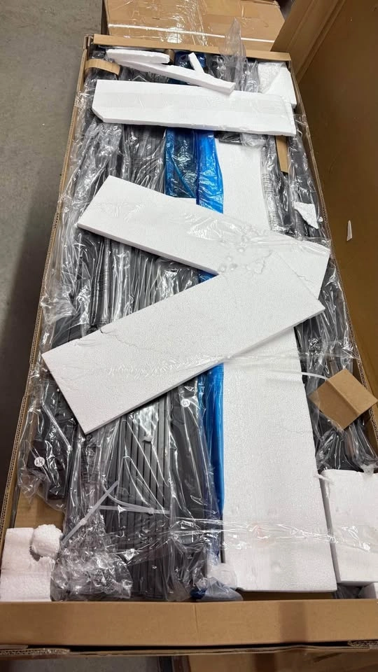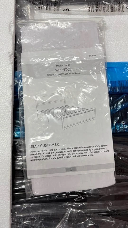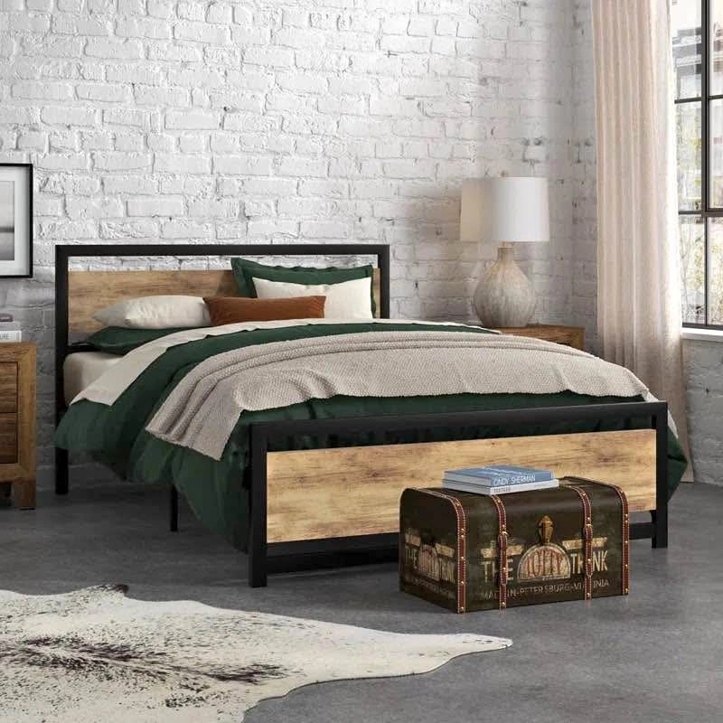 This platform bed features clean lines and a mixed-material look that rounds out your bedroom or guest room with an industrial style. Its frame is made from black metal, and it stands on straight legs for a modern design. The matching headboard and footboard strike an open, rectangular silhouette, while the distressed wooden accents with wood scoring infuse your space with a rustic feel. Condition: New in box Size : Check images Pickup: SmartStop, 2055 Cornwall Rd, Oakville, ON L6J7S2 Cash only!