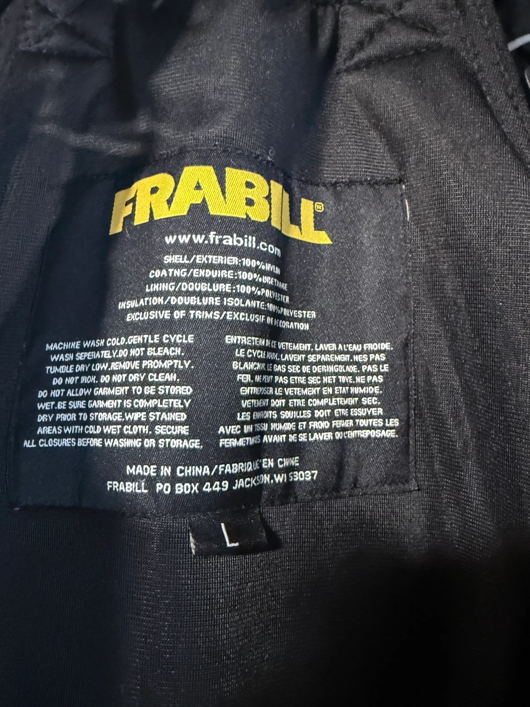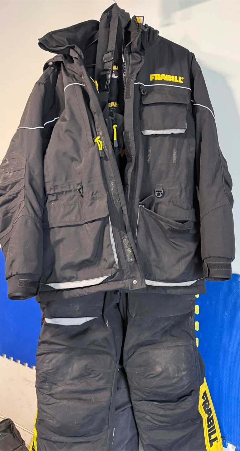 Selling a Frabill ice fishing suit in size L. It's in good condition and ready to keep you warm on the ice! The shell and coating are 100% nylon, with 100% polyester lining and insulation. Perfect for those cold winter days!