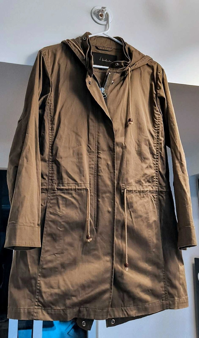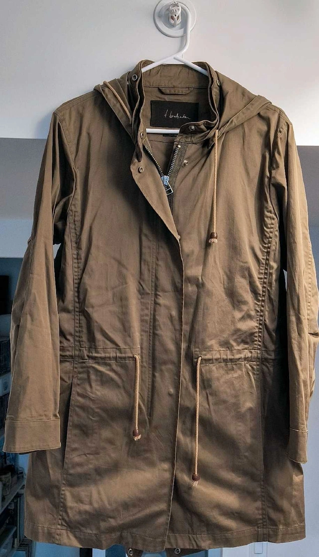 T. Babaton Aritzia Medium Olive Green Lightweight Jacket. Excellent Condition! Size: Medium. Colour: Olive Green. With Hood & Waist Draw Strap. Pick up only near Dufferin/Dupont. Smoke Free Home. $45 Cash. No E-transfer. For Sale By: Owner