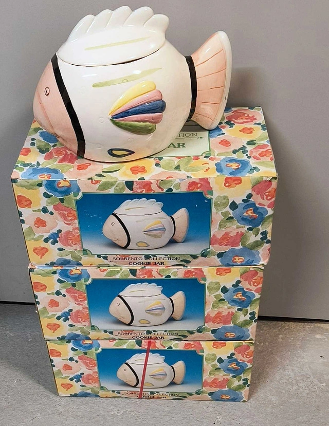 Sorrento Collection Fish Cookie Jars (Ceramic) X3 *** Excellent Condition!! *** 3 Identical Cookie Jars *** Ceramic Cookie Jars Pick Up Only!! Smoke Free Home. $15 Each. $45 for all 3. No E-transfer *** Pick up near Dufferin/Dupont For Sale By: Owner