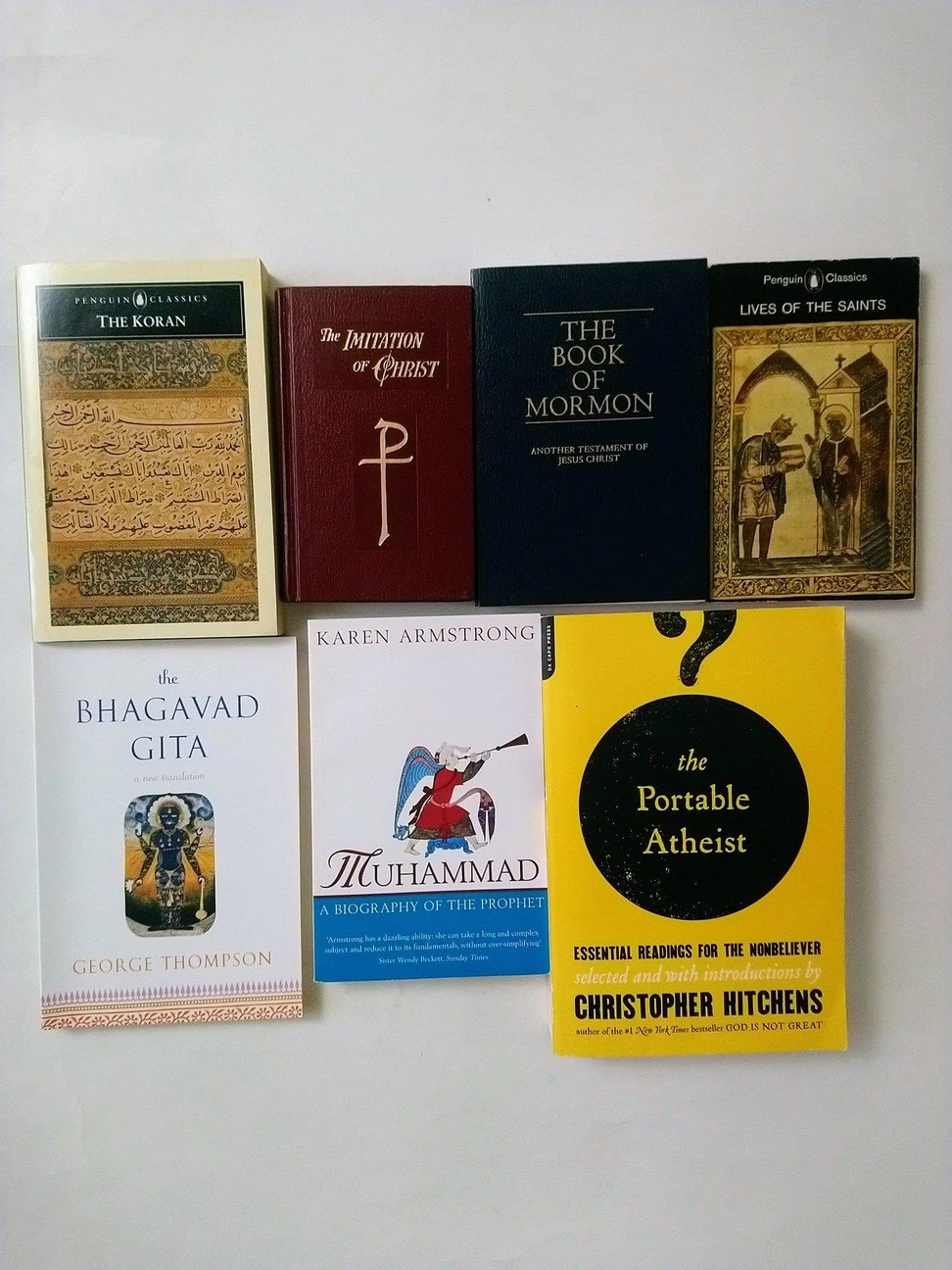 Location: Yonge and College /downtown Toronto $5 each except for The Portable Atheist. Cash only; prices are firm. - The Koran - The Imitation of Christ - The Book of Mormon - Lives of the Saints - The Bhagavad Gita - George Thompson, trans. - Muhammad: A Biography of the Prophet - Karen Armstrong - The Portable Atheist: Essential Readings for the Nonbeliever - Christopher Hitchens - $7 Feel free to check out my other book posts as well!