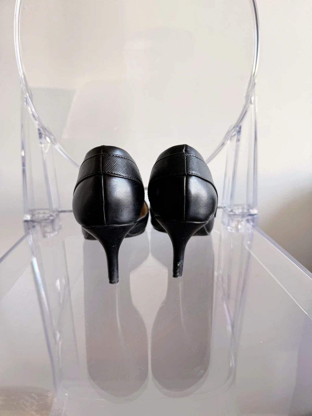 DSW Kelly & Katie black leather pumps Low heal for everyday comfort Open side detail Cushion sole