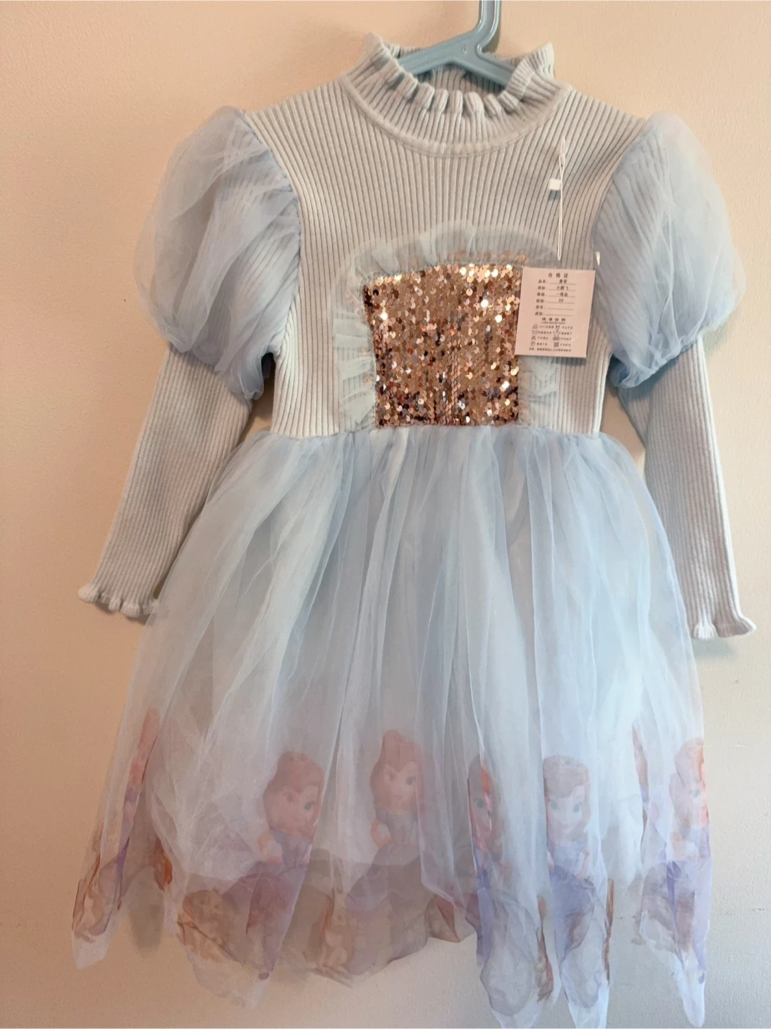 Blue Sweater Dress with Princess Print Toddler size 6-7T
