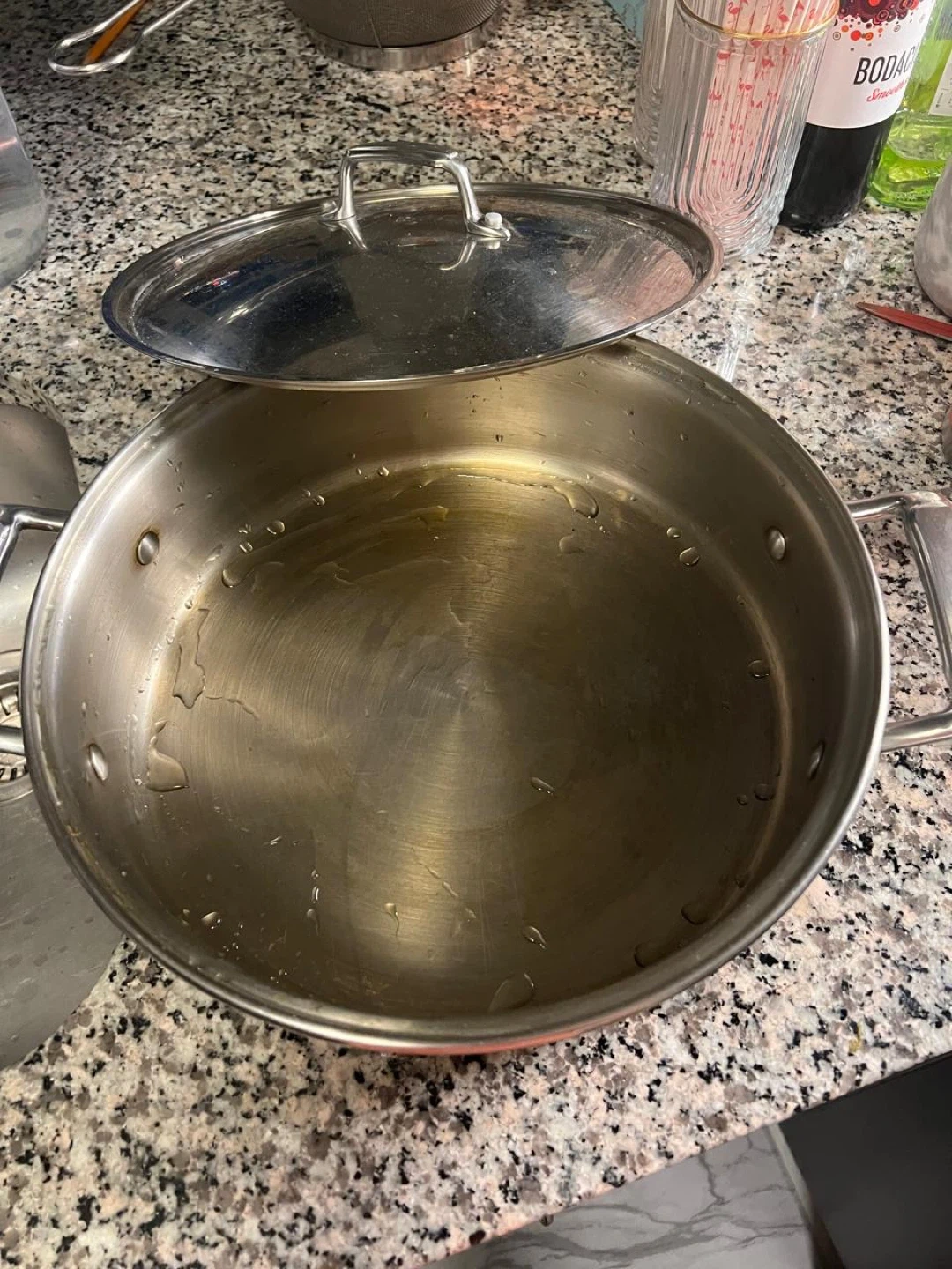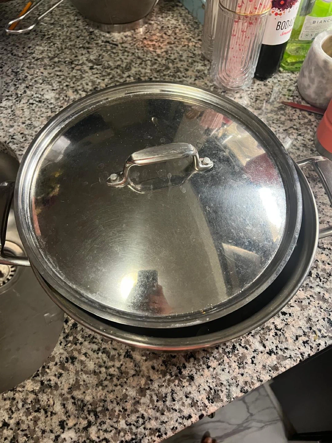 Selling a used stainless steel stock pot with a lid. It's in good condition and ready for your next cooking project! The pot is perfect for making soups, stews, or stocks. It's durable and easy to clean. The lid fits snugly to help retain heat and moisture