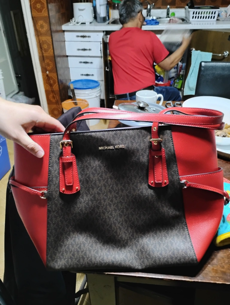 Here's a stylish Michael Kors tote bag in a lovely red and brown colour combo. It's in great condition and ready for a new home. Perfect for carrying all your essentials!