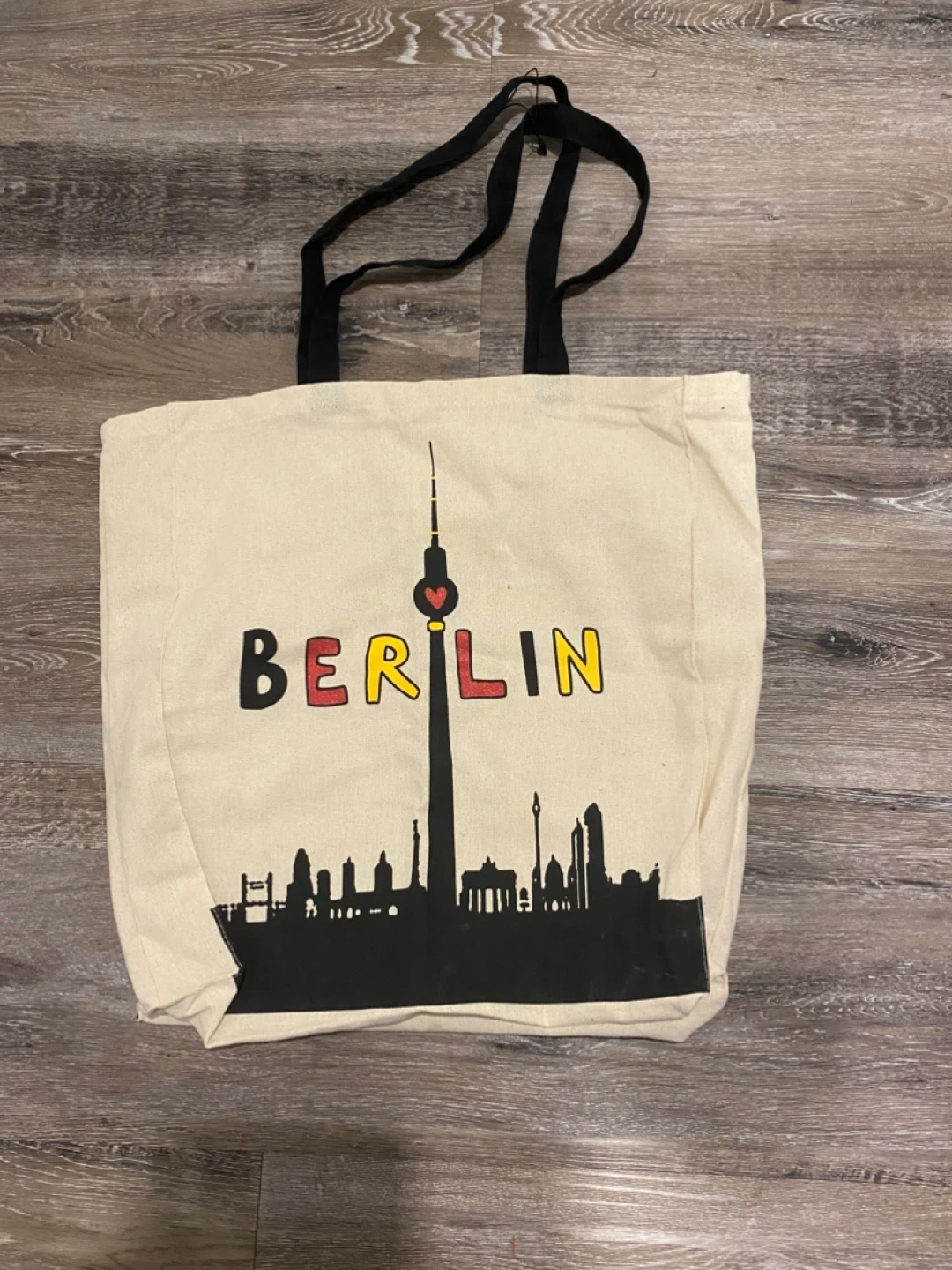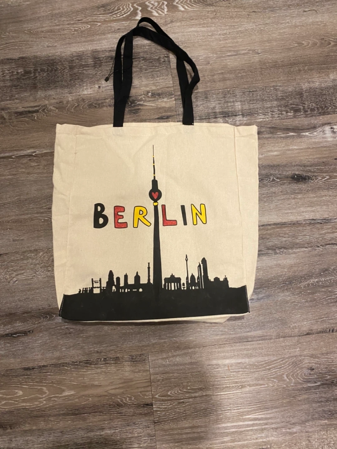 Tote bag with a Berlin design, perfect for carrying your everyday essentials or groceries Pick up Sage Hill NW Cash only Check out my other listings Pet and smoke free home
