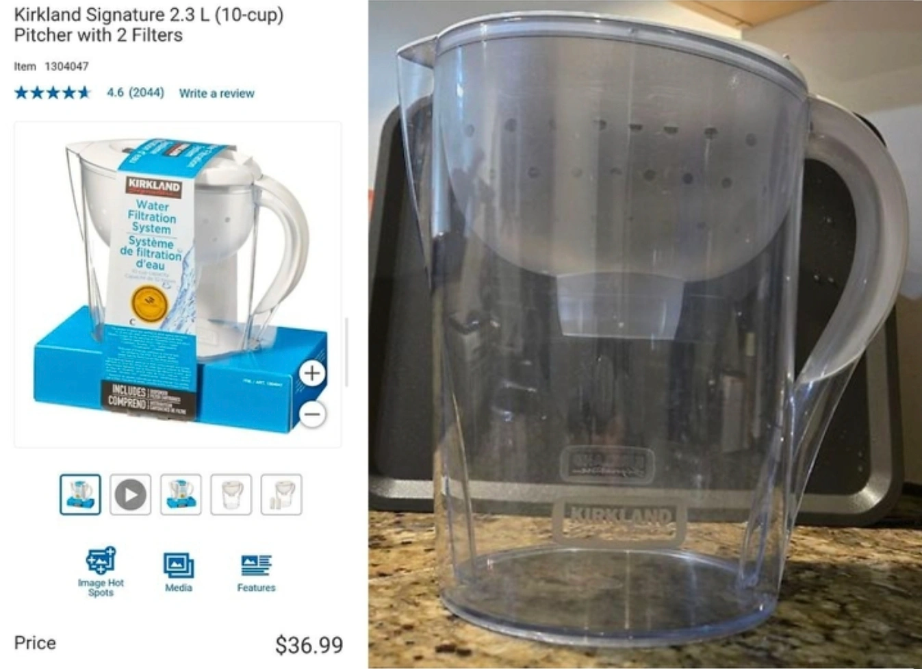 Selling a Kirkland Signature 2.3 L (10-cup) water filter pitcher! It comes with 2 filters and is in great condition. Originally bought for $36.99, this pitcher is ready to keep your water clean and fresh