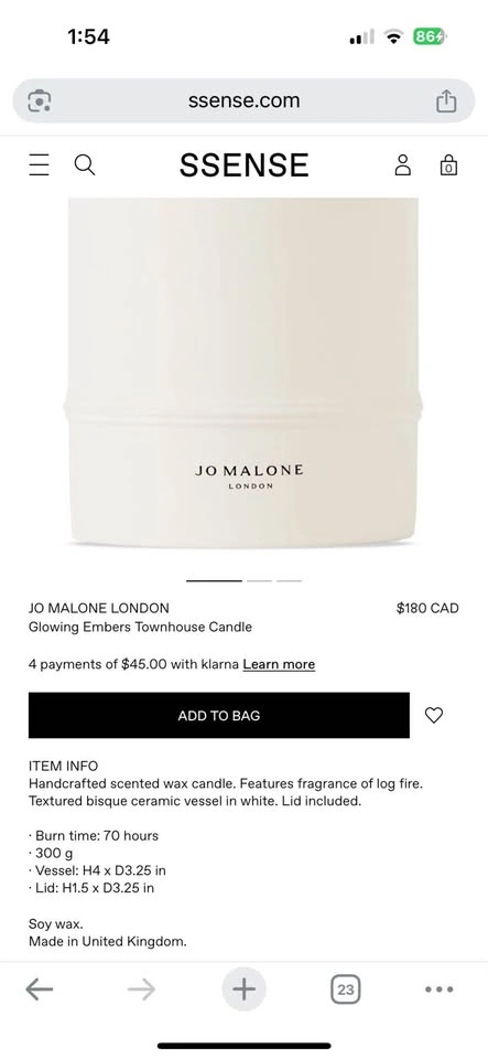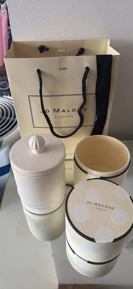 Unused. Comes with gift bag and original packaging. Beautiful gift. $180 currently to purchase online. Handcrafted scented wax candle. Features fragrance of log fire. Textured bisque ceramic vessel in white. Lid included. · Burn time: 70 hours · 300 g · Vessel: H4 x D3.25 in · Lid: H1.5 x D3.25 in Soy wax. Pickup in Yaletown.
