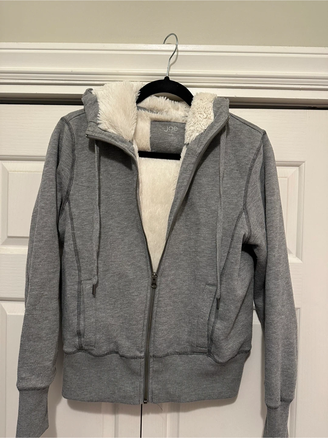 Cozy Joe Fresh hoodie in a lovely grey colour! It's lined with soft sherpa material for extra warmth. Perfect for chilly Canadian days!
