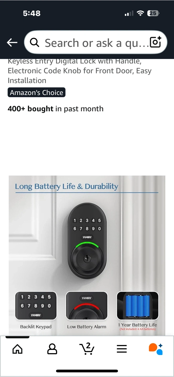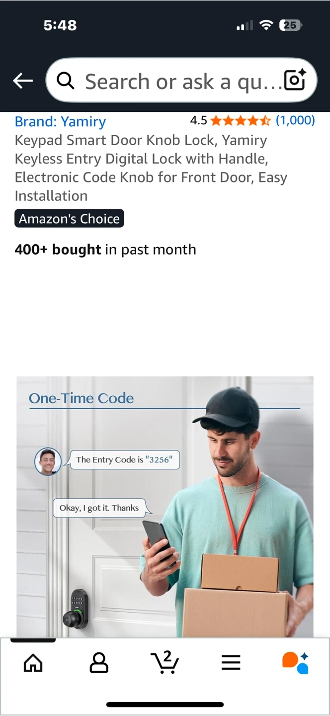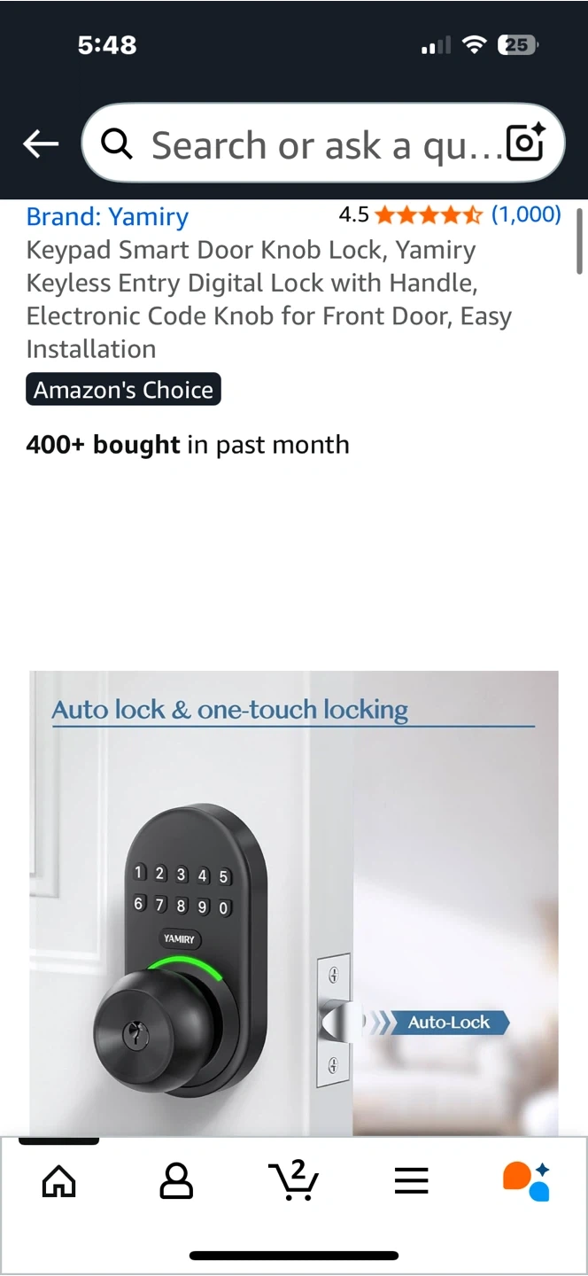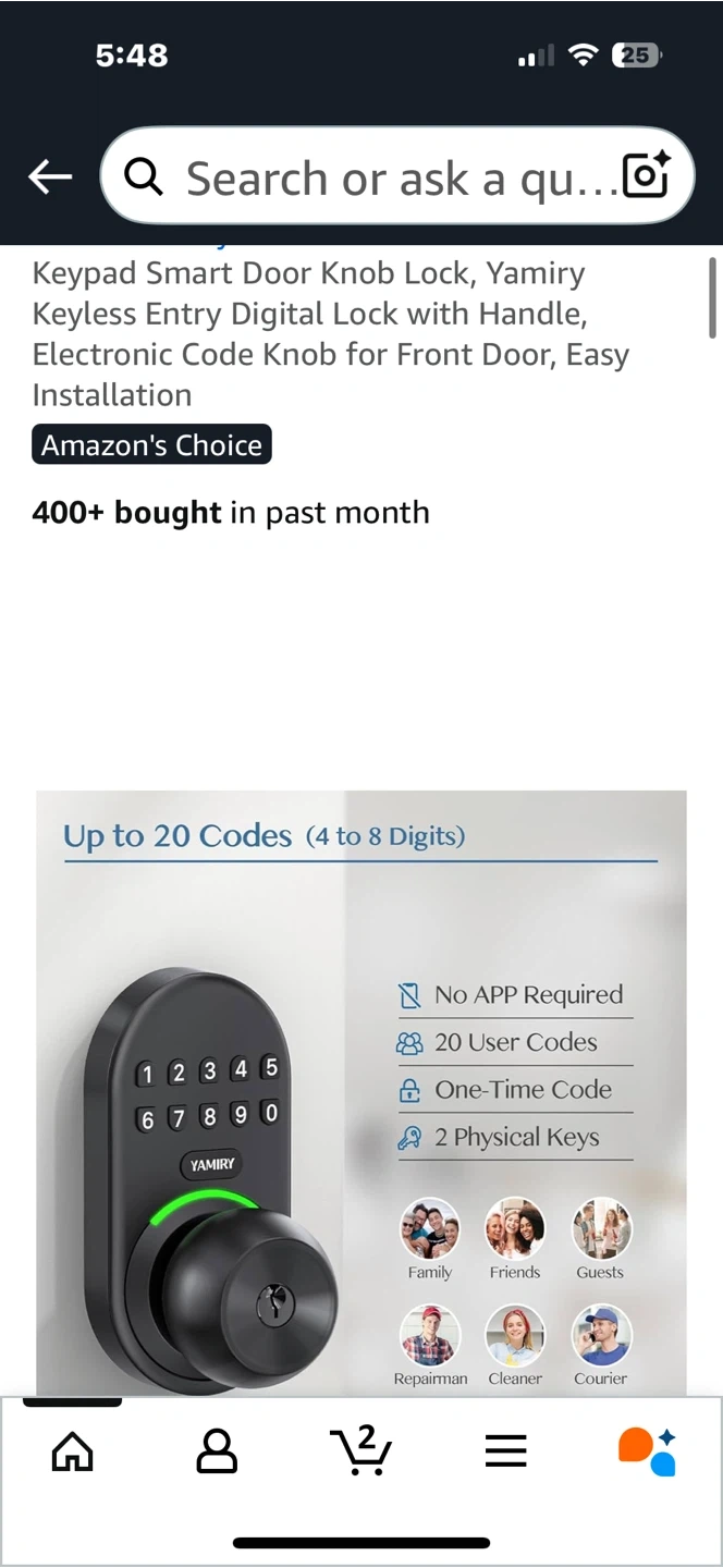 Selling a Yamiry Keypad Smart Door Knob Lock. It's a keyless entry digital lock with a handle and electronic code knob, perfect for front door installation. It's an Amazon's Choice product with great reviews. You can set up to 20 codes (4 to 8 digits) and it doesn't require an app. It supports 20 user codes and one-time codes. It also has a backlight keypad and low battery alarm. New open box