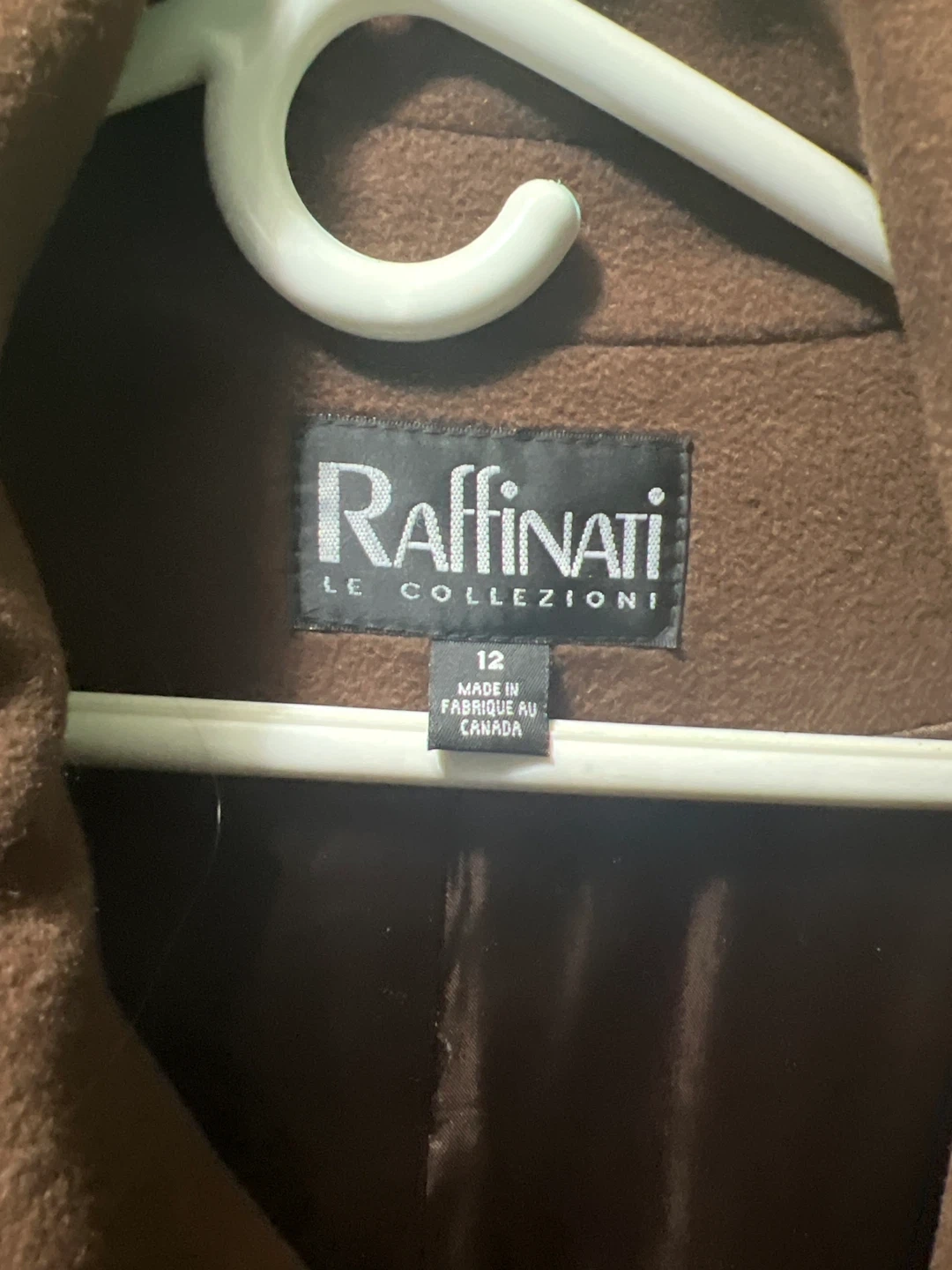 Selling a Raffinati Le Collezioni wool coat in a lovely brown colour. It's a size 12 and made in Canada. Perfect for keeping warm during the colder months!
