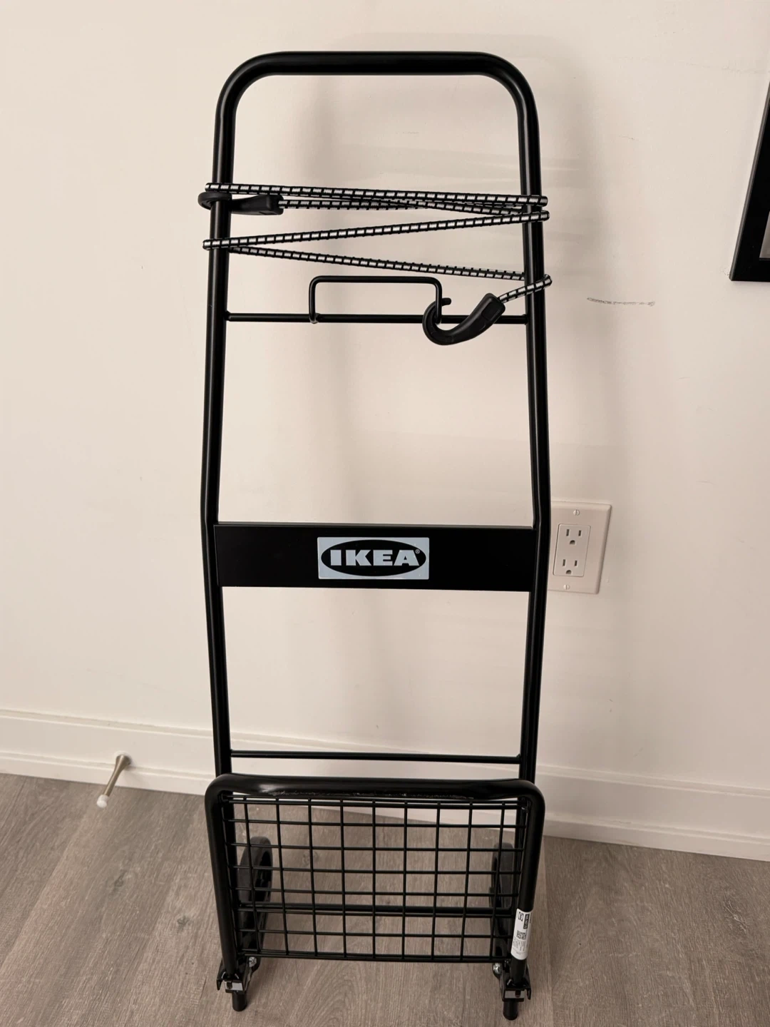Sturdy and foldable IKEA RULLEBÖR cart, perfect for carrying groceries, luggage, or heavy items. Used only a couple of times and in excellent condition. Lightweight, easy to store, and comes with an elastic cord to secure your load. Max load 30 kg. https://applink.ikea.com/tY8M9r9M4w--10516772--ca--en