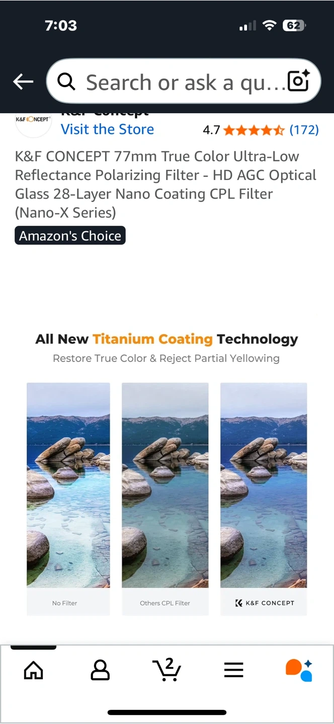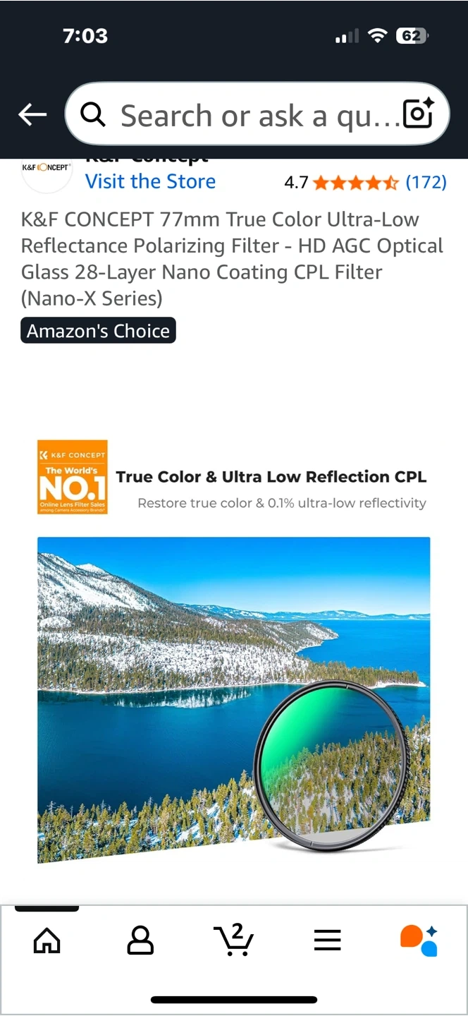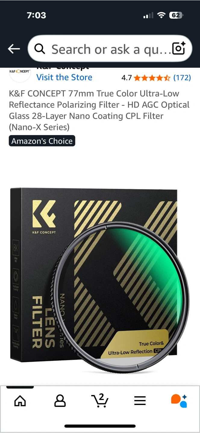 Selling a K&F Concept 77mm True Color Ultra-Low Reflectance Polarizing Filter (Nano-X Series). It features HD AGC Optical Glass with a 28-Layer Nano Coating. New