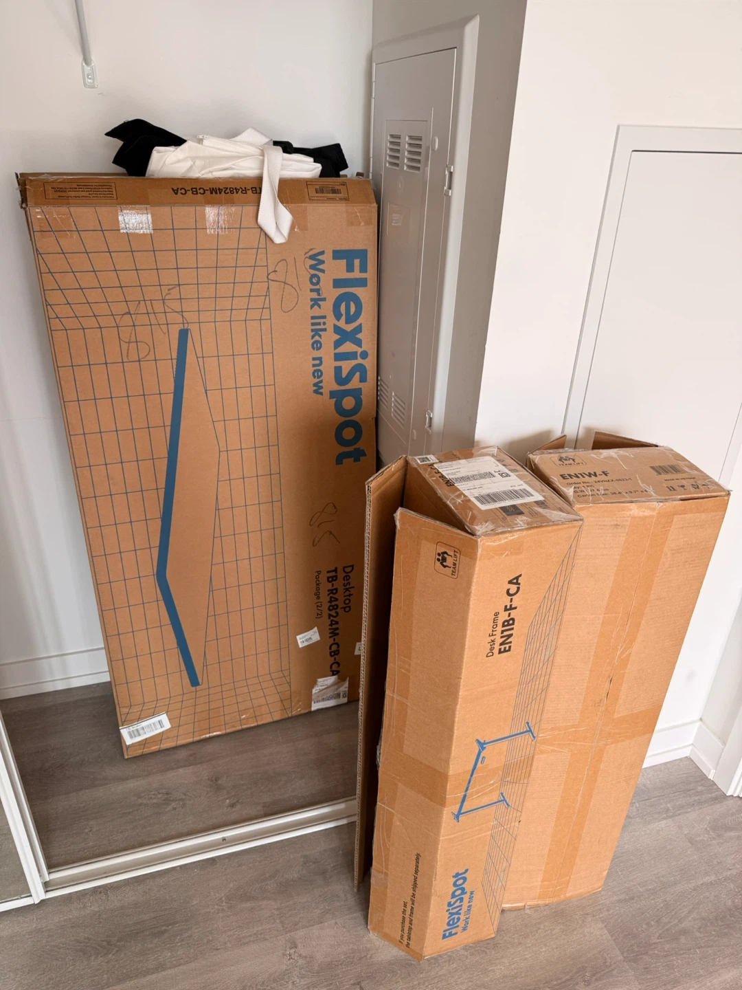 FlexiSpot EN1 height-adjustable standing desk, 48x24”, Mahogany color, in excellent condition. Features a single-piece solid tabletop (not split like others) for a sleek, seamless workspace. Smooth height adjustment for sitting or standing, sturdy construction, and perfect for home offices or professional setups. Absolutely clean and like new. https://a.co/d/bApRIdz Available November 1st only!