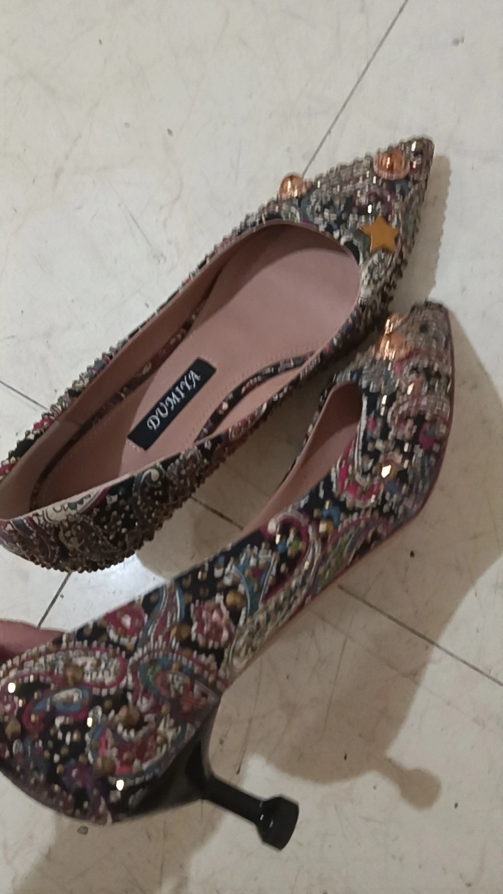 Selling a pair of Dumiya heels with a unique embellished design! They feature a pointed toe and a slim heel. Perfect for adding a touch of sparkle to your outfit