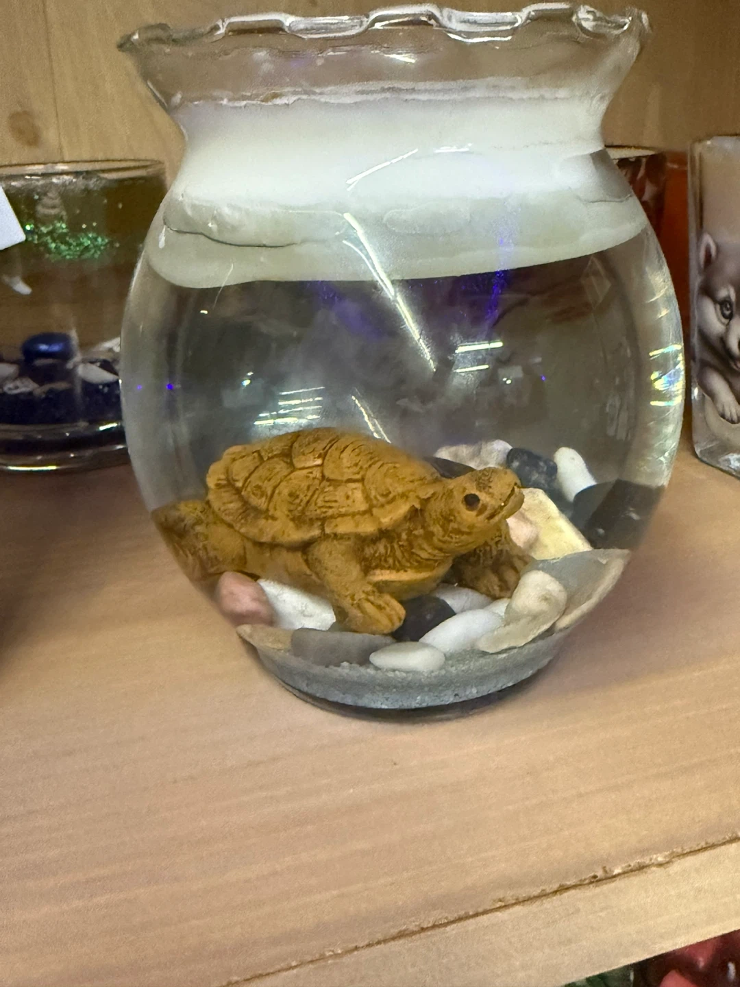 Selling these unique decorative candles! They feature cute animal figurines inside, like tigers and turtles, surrounded by decorative stones and sand. They add a whimsical touch to any room and make great conversation starters