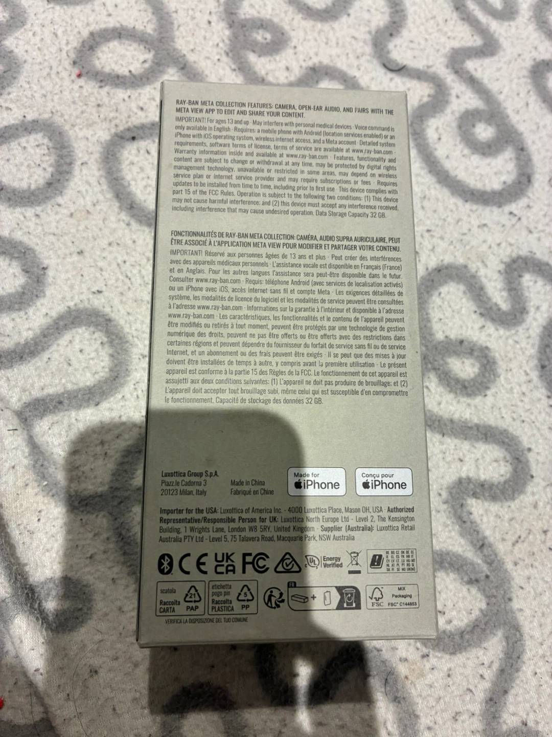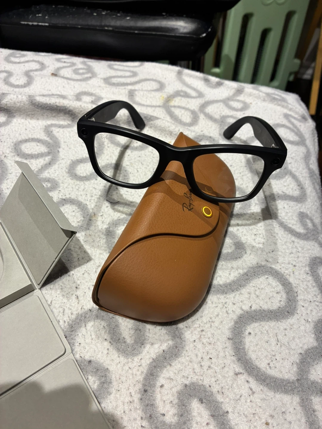 Selling a pair of Ray-Ban Meta Wayfarer smart glasses in matte black! These glasses are in great condition and come with the original box and case. They're the perfect blend of style and technology, allowing you to capture photos and videos, listen to music, and stay connected on the go Original Price : 600+ tax not even a year old. just used few times. RFS: changing to different style