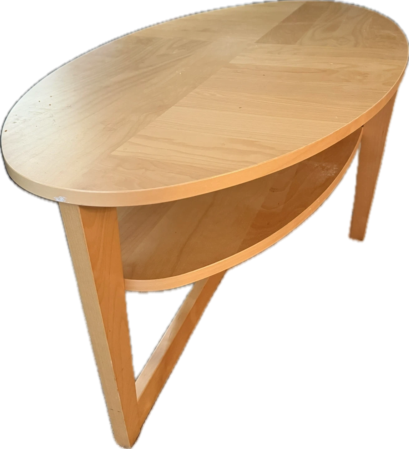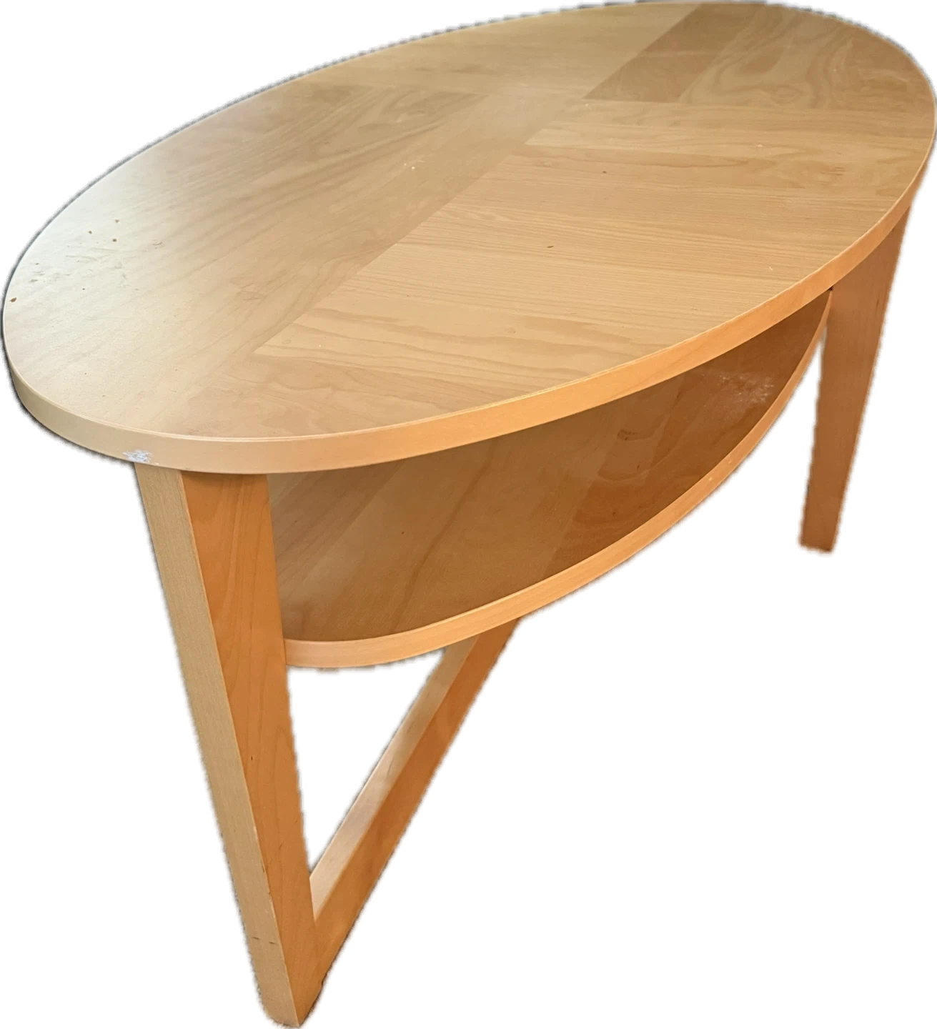 Selling a gently used IKEA oval coffee table. It has a light wood finish.There are some minor signs of wear on the top surface, but overall it's in good condition and ready for a new home