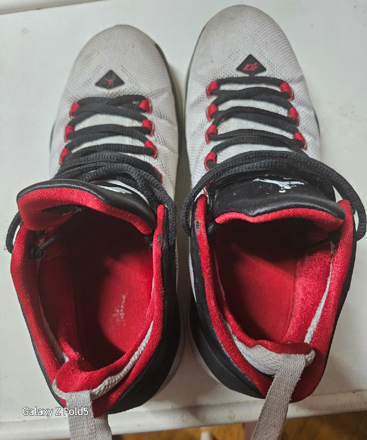 Selling a pair of Jordan CP3 basketball shoes. They are white, black and red. Great for playing ball or just wearing around!