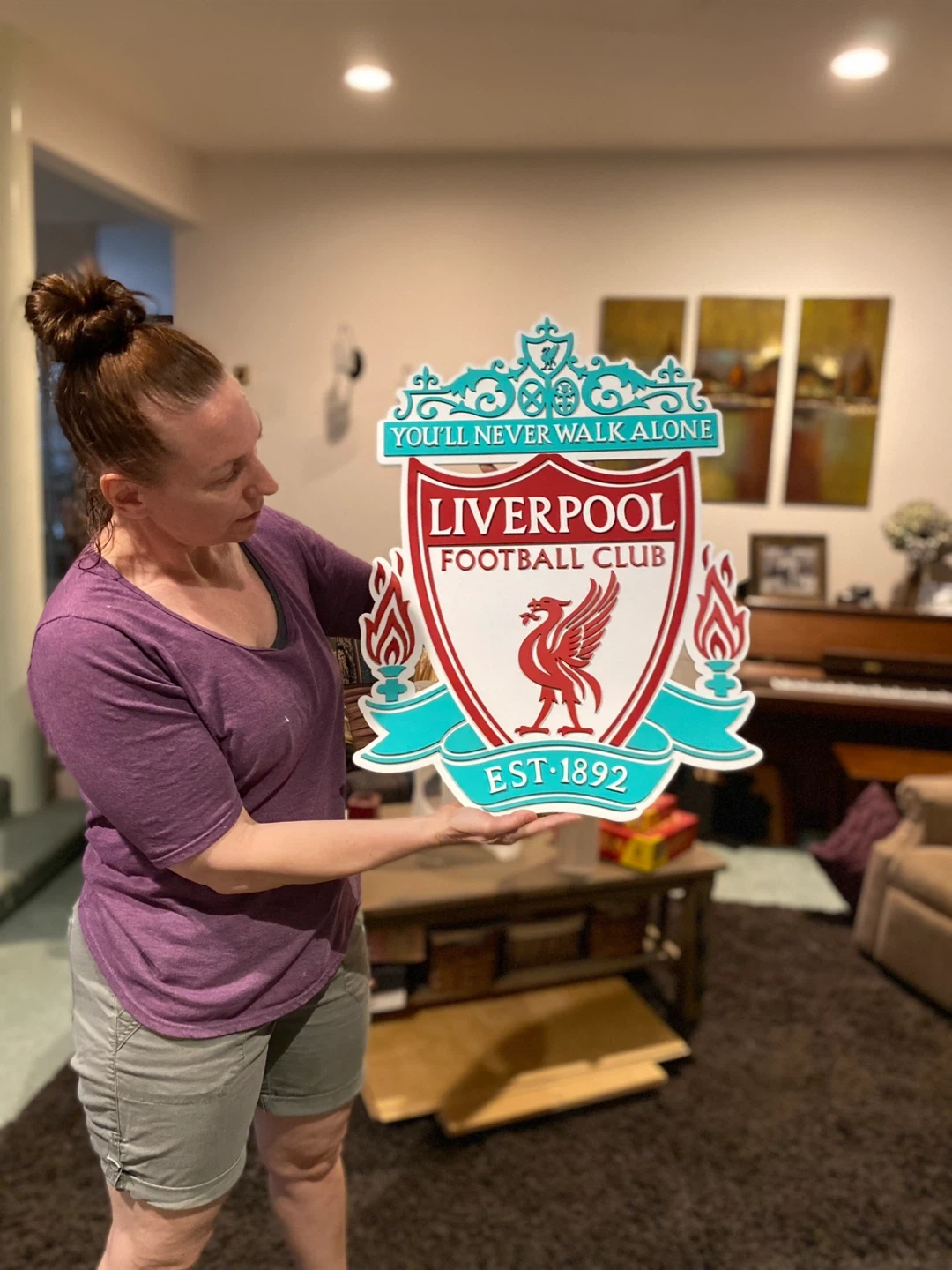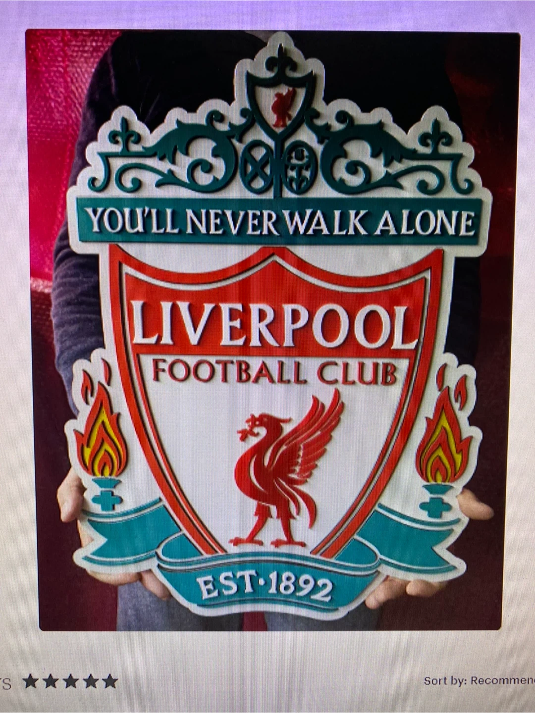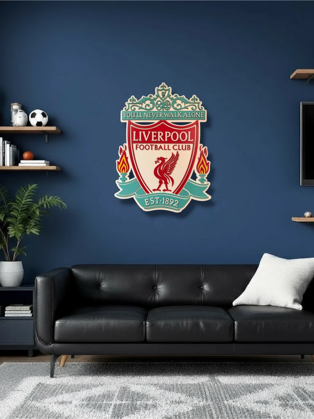 Selling a Liverpool Football Club wall decor piece. It features the iconic Liverpool crest with the 'You'll Never Walk Alone' motto and the established year 'Est. 1892'. Perfect for any Liverpool fan to add some team spirit to their home! Measuring in at 26 inches tall by just over 19 inches wide the attention to detail in second to none. Priced at $275 it makes a great gift to the beloved Liverpool Football Fan.