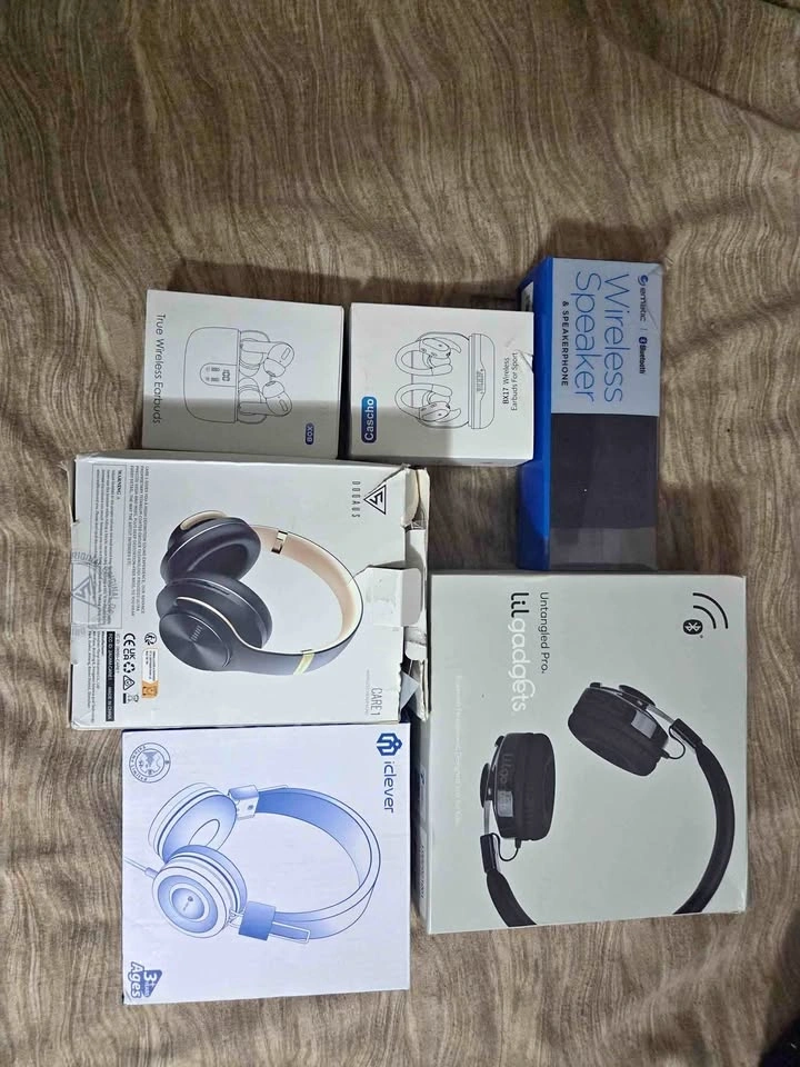 Brand new headphones & accessories for sale! Items Included: - 4 pairs of brand new headphones in original packaging - wireless speaker - true wireless earbuds Selling ALL of these brand new items for $15 EACH! Location: Hamilton Mountain (near Mohawk College) Details: - All items are brand new, sealed in original packaging. - Perfect for gifts, personal use, or reselling. Interested? Message me for more info or to arrange pickup!