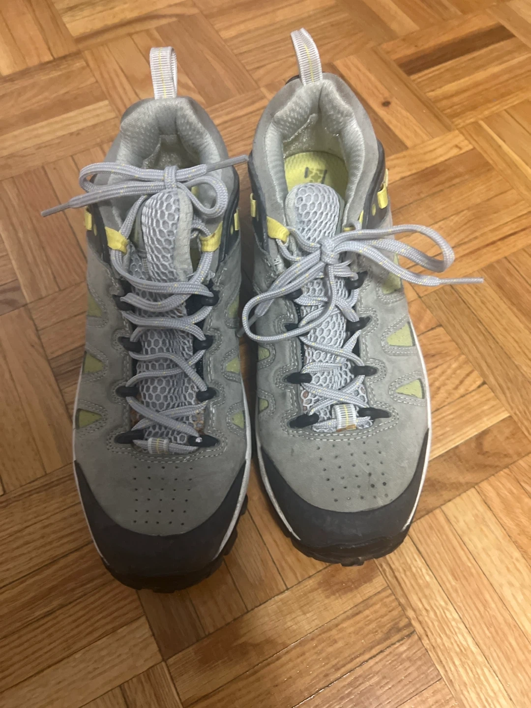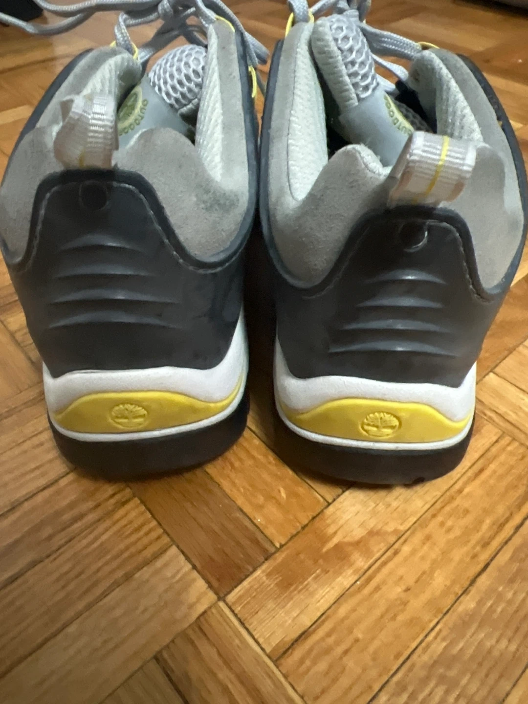 Selling a pair of Timberland hiking shoes in size 8.5M. They're made with genuine leather and man-made materials. The soles have Vibram for great grip. They've been used but still have lots of life left in them