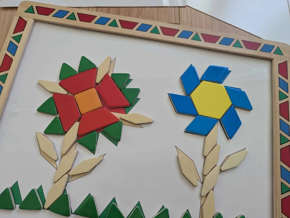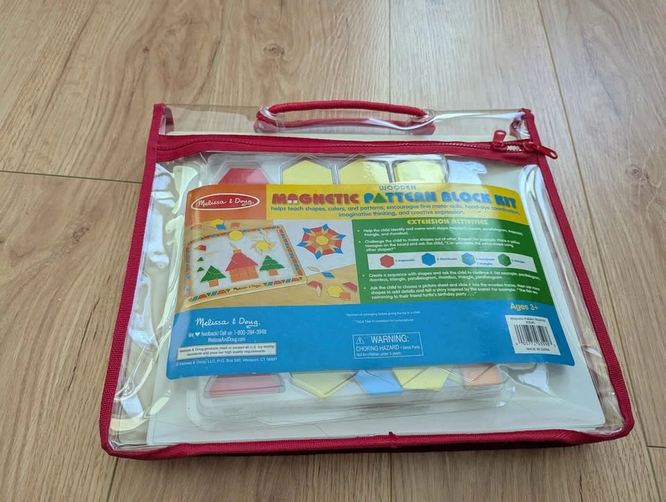 Melissa and Doug magnetic pattern block kit. Almost perfect condition, but one page is ripped (taped up). Pickup near 49th and Cambie
