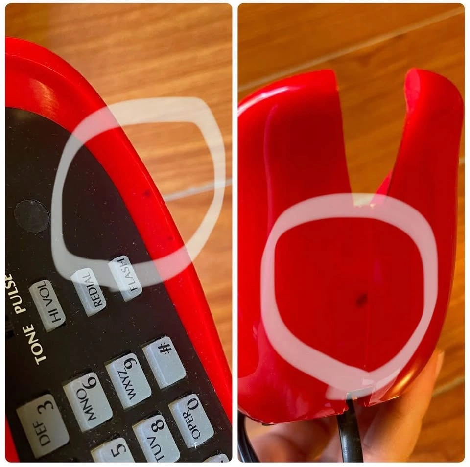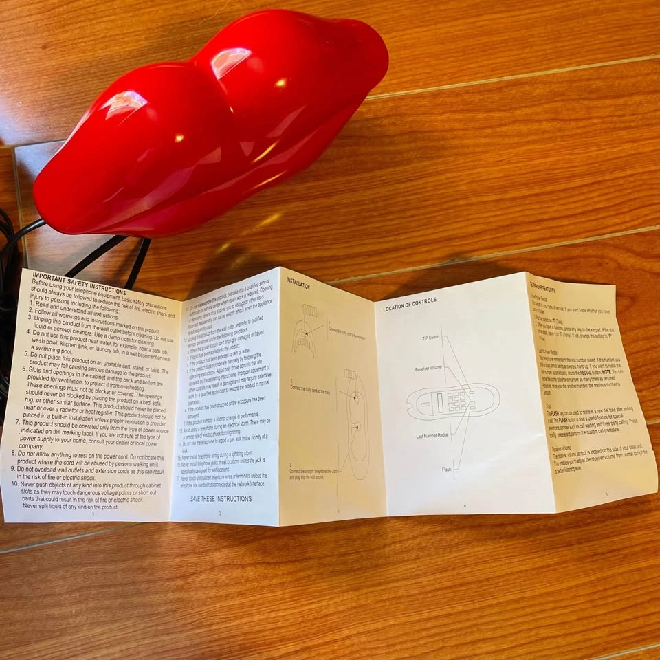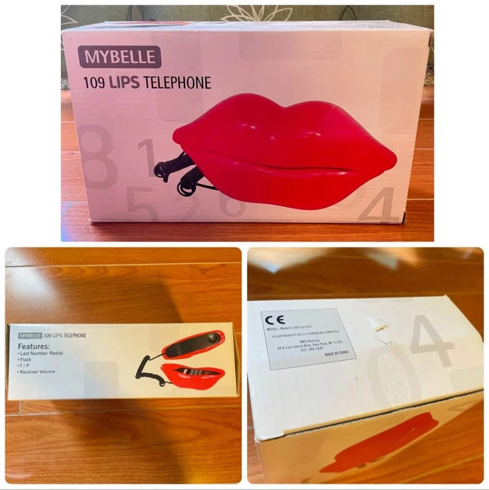 Pick up at Don Mils & Steeles Urban Outfitters Mybelle Red Lips Phone - Push Button Landline Telephone Condition: Pre-owned but mainly for room decor. Tested and works perfectly as a landline phone. There are black stains that have been there since I bought it (circled in white in the photos). The box also has a bit of damage. Please see the photos for details. Other than that, it’s in excellent condition. Features: • Last Number Redial • Flash • T / P • Receiver Volume
