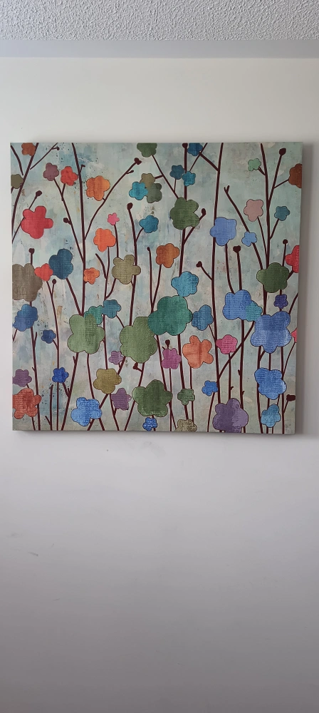 Canvas wall art featuring a colourful floral design! It's in great shape and would look lovely in any room of the house