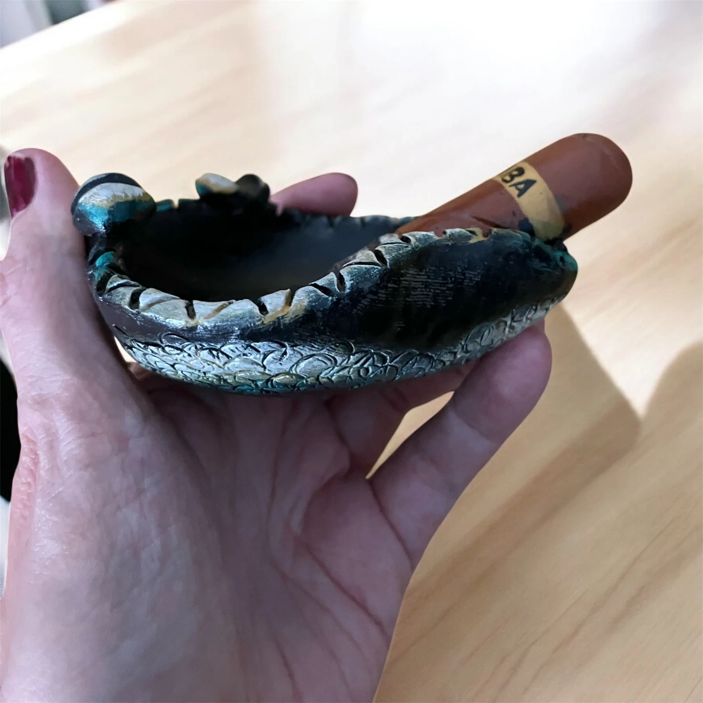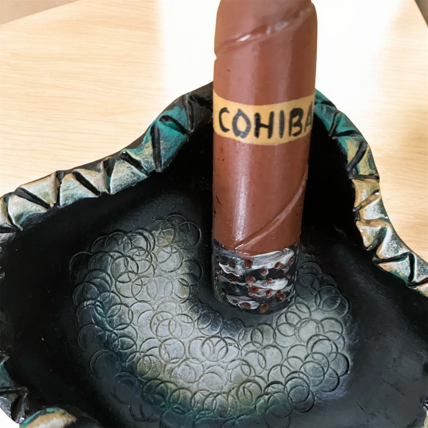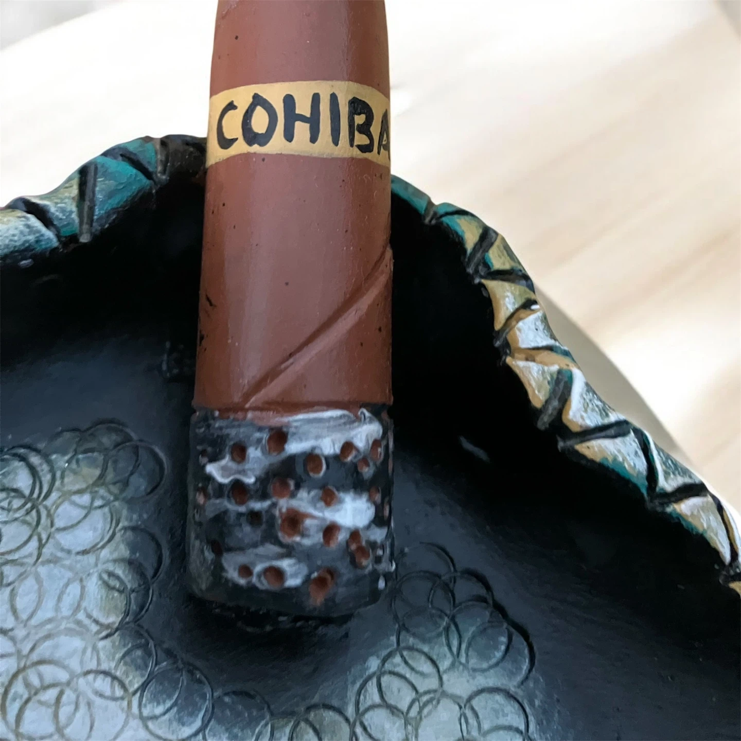 Like new unique Cuba COHIBA cigar ashtray. Features a black and silver base with brown COHIBA cigar design. Perfect for cigar enthusiasts. Has never been used - bought as a souvenir. Measures approximately 4" at widest part of ashtray. Cigar is 2.5" L I ship using recycled material within my home to reduce waste. The package will be wrapped with care if requested