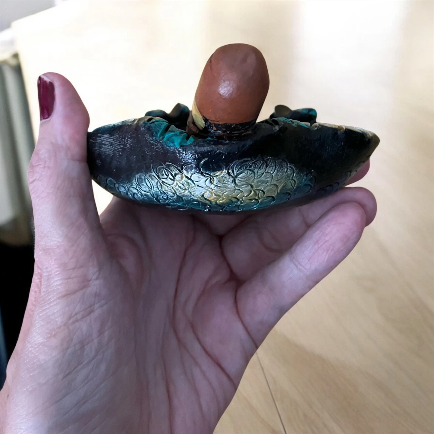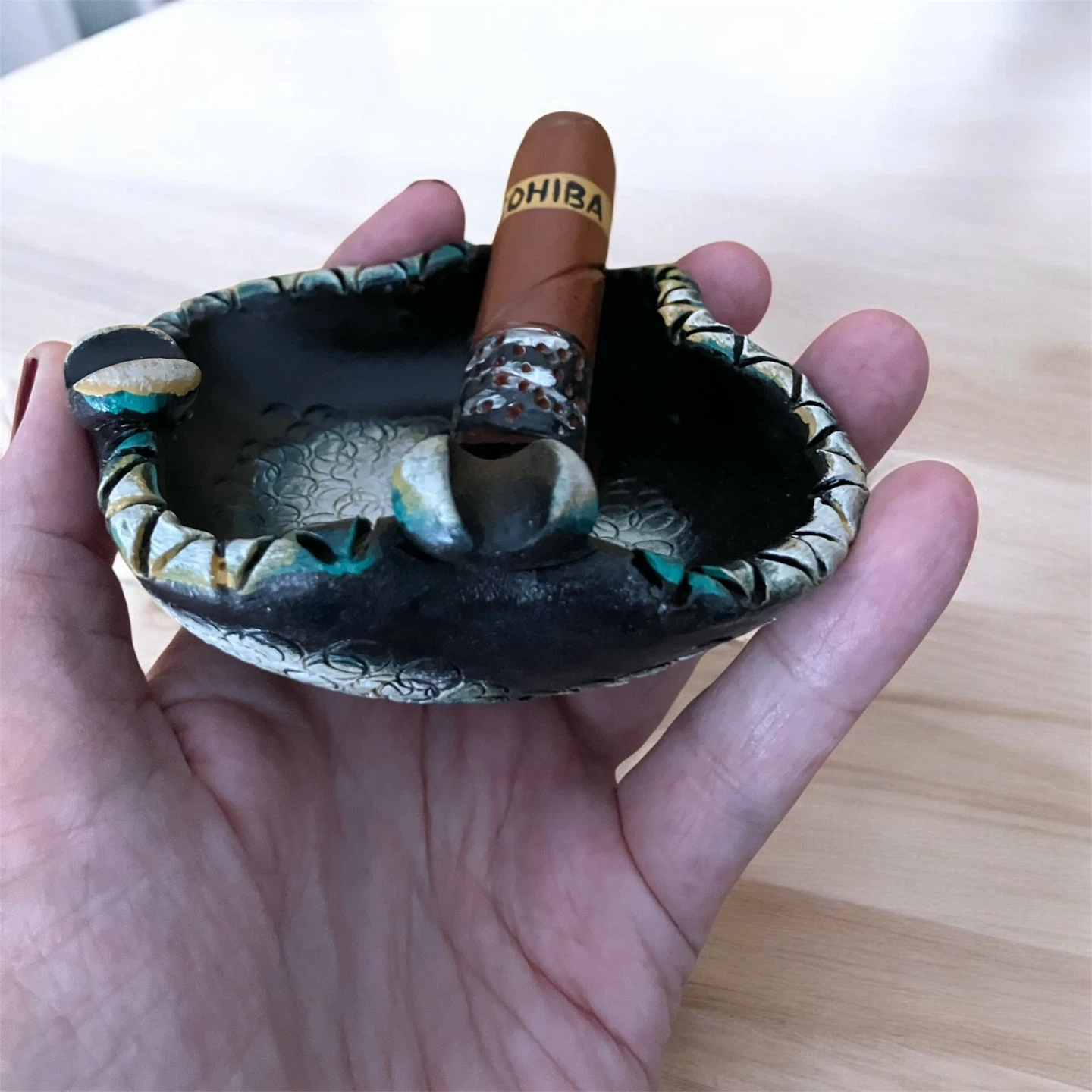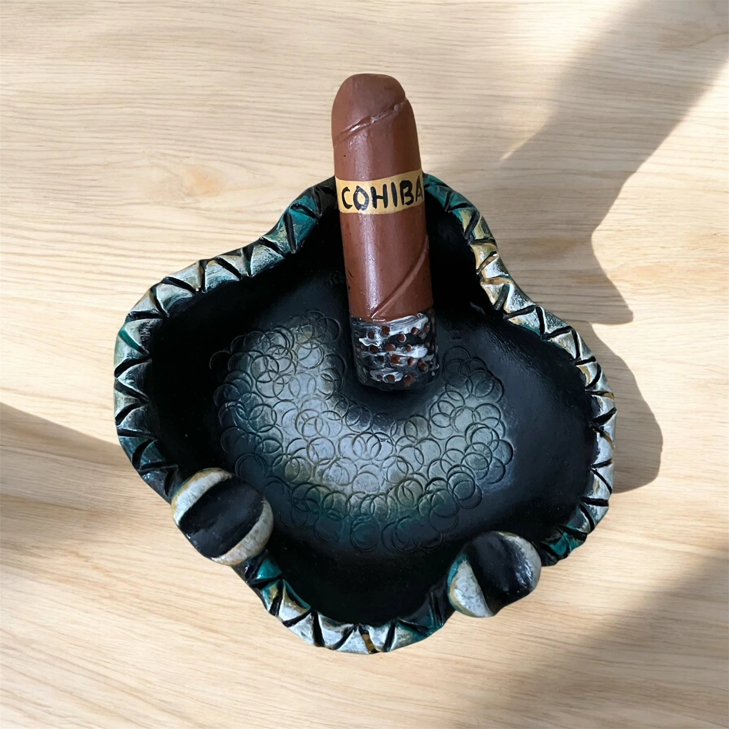 Like new unique Cuba COHIBA cigar ashtray. Features a black and silver base with brown COHIBA cigar design. Perfect for cigar enthusiasts. Has never been used - bought as a souvenir. Measures approximately 4" at widest part of ashtray. Cigar is 2.5" L I ship using recycled material within my home to reduce waste. The package will be wrapped with care if requested