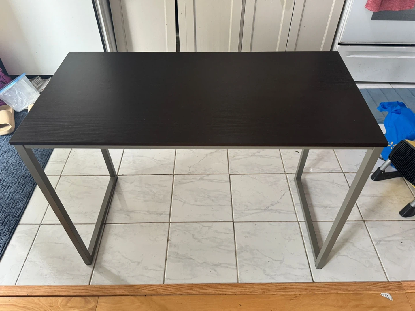 Selling a dark brown desk in great condition! It's perfect for a home office or study space. The desk has a sleek and modern design that will fit into any decor. Pick up only Dimension:- 102cm* 51 cm ikea BLACK