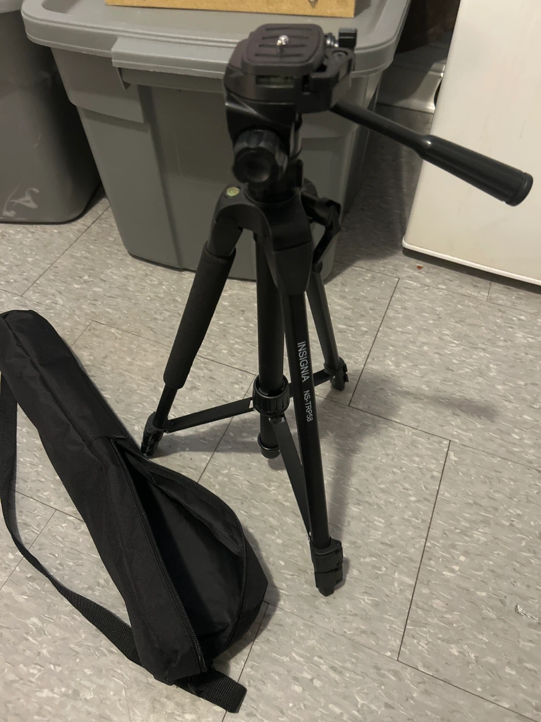 Selling an Insignia tripod, model NS-TRP58. It comes with its original carrying case, making it easy to transport and store. Perfect for photography enthusiasts! Brand new never used, got the wrong one