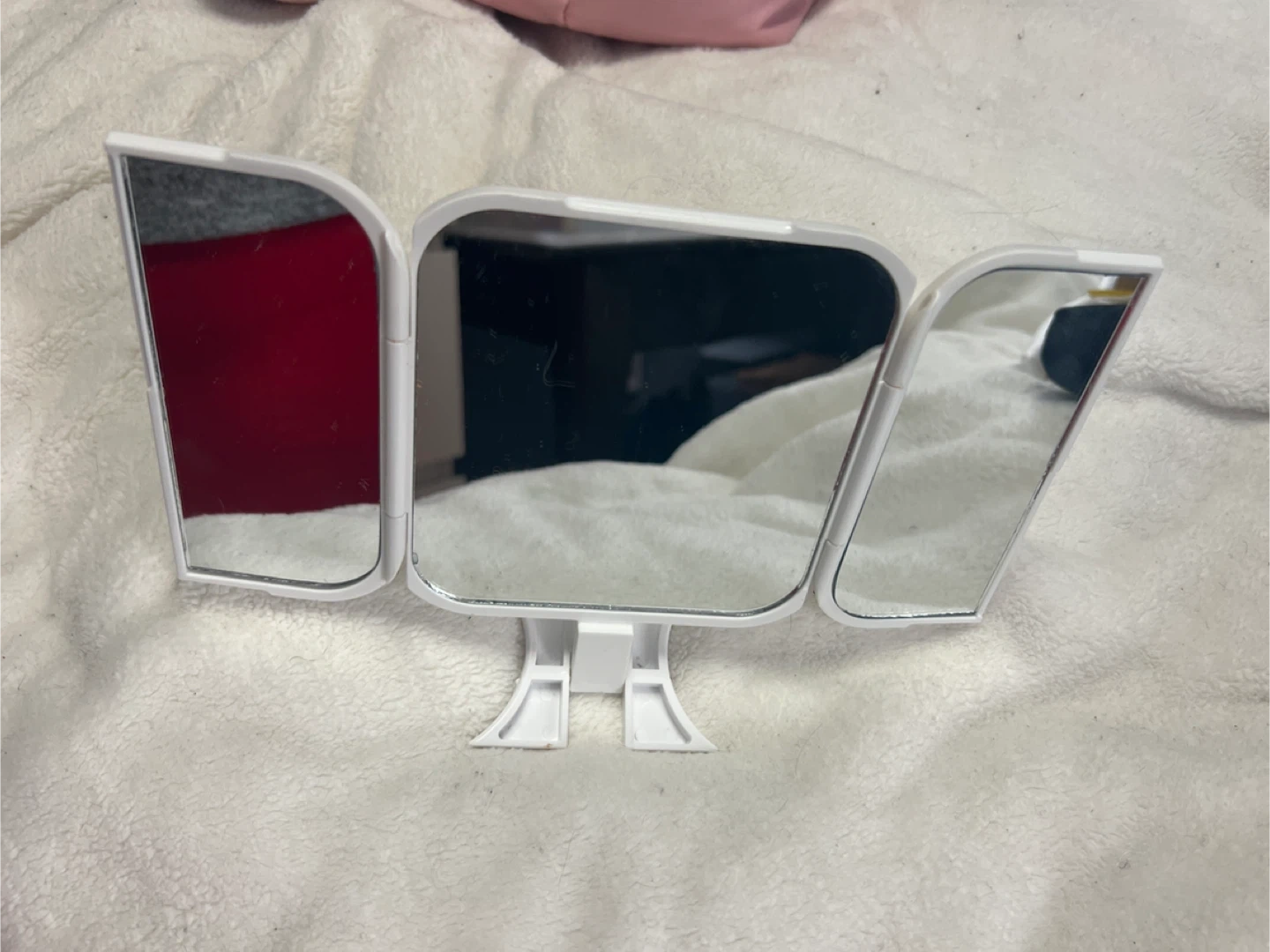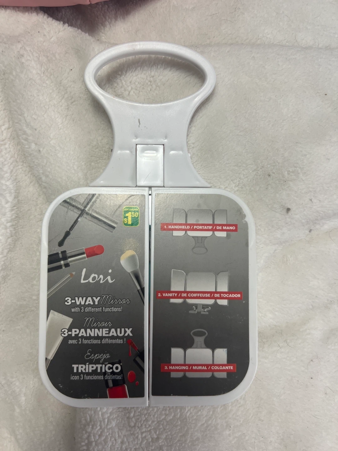Selling a Lori 3-way mirror! It has three different functions: handheld, vanity, and hanging. Perfect for makeup application or any other use where you need a good view
