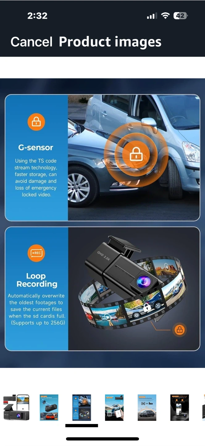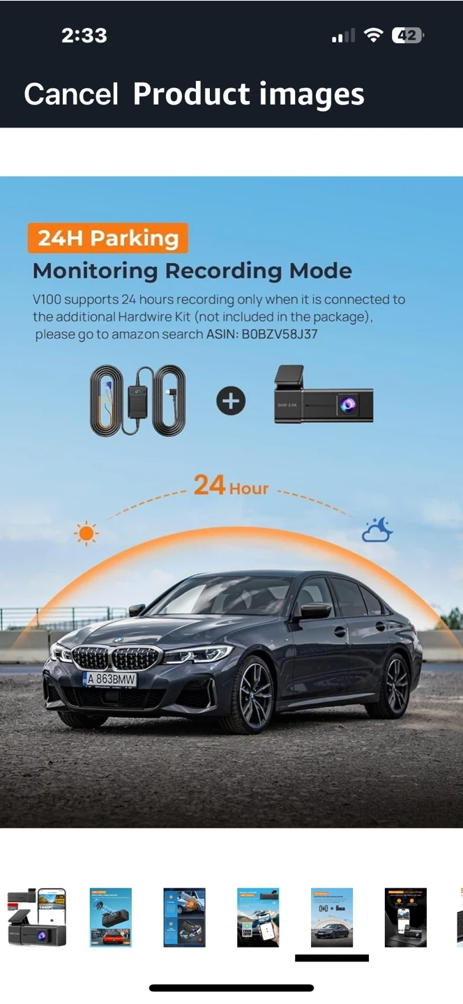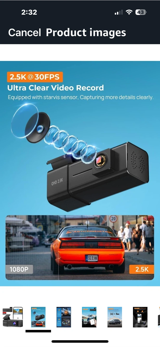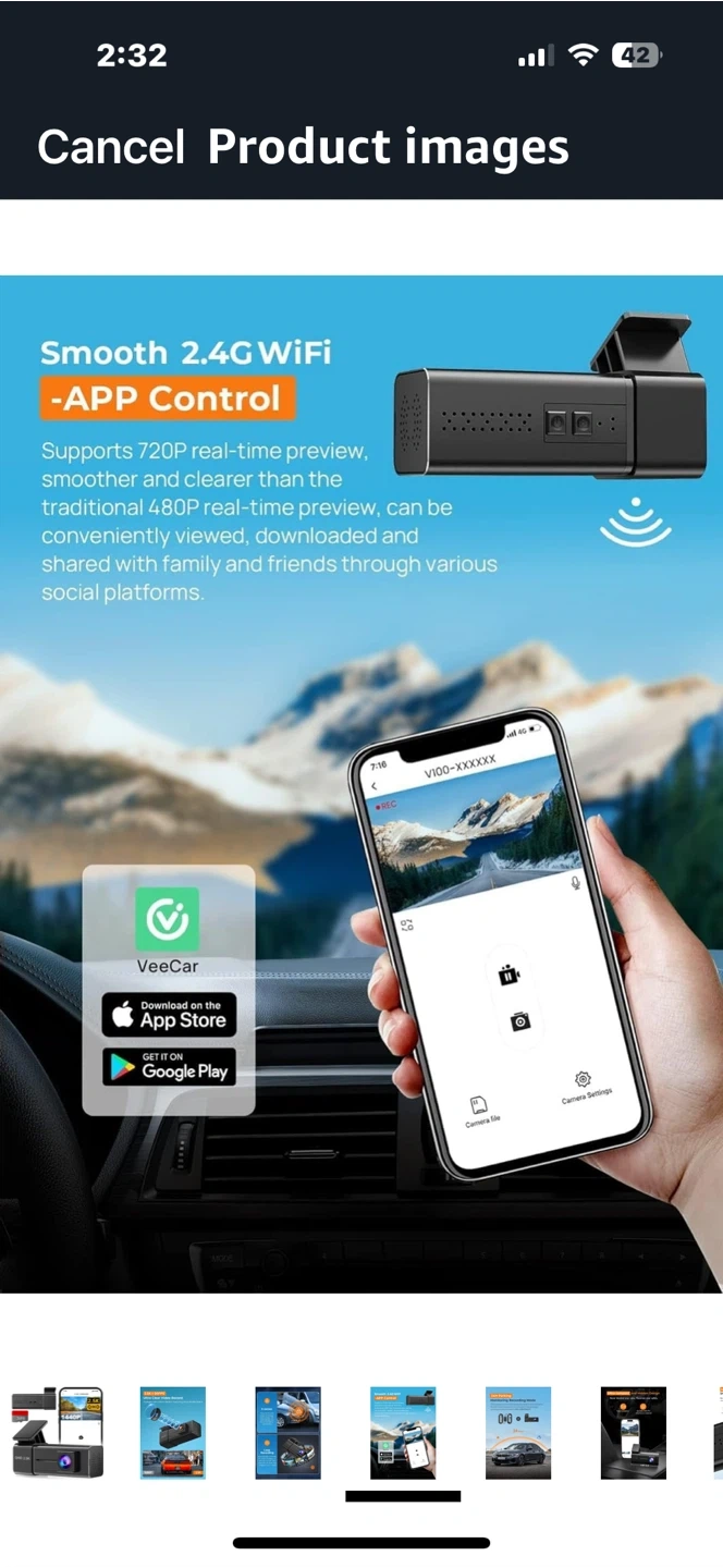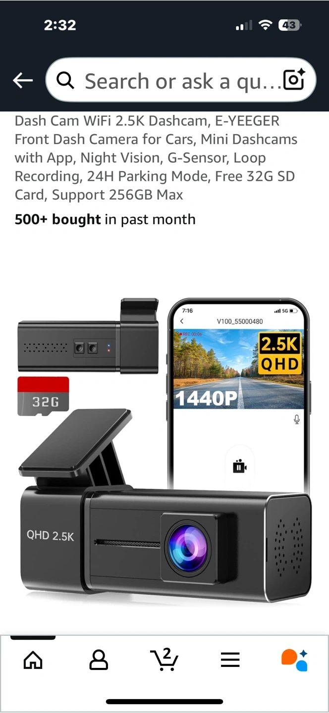 Selling an E-YEECER Dash Cam WiFi 2.5K. It's a front dash camera for cars, mini dashcams with app, night vision, G-sensor, loop recording, and 24H parking mode. It comes with a free 32G SD card and supports up to 256GB max. It features smooth 2.4G WiFi and app control, supporting 720P real-time preview. It's equipped with a starvis sensor, capturing more details clearly New