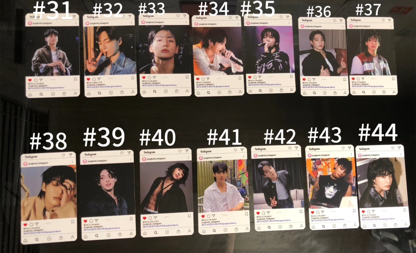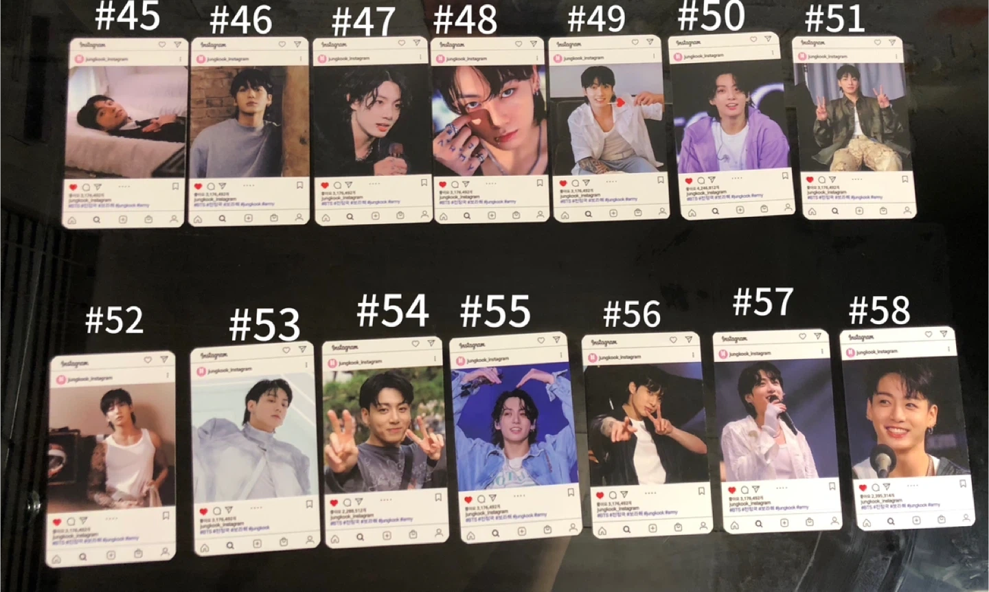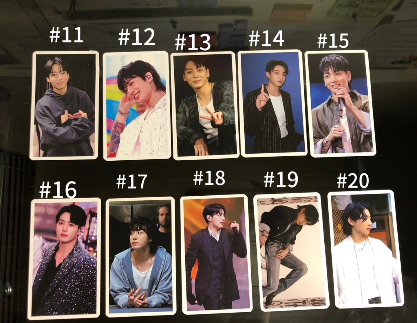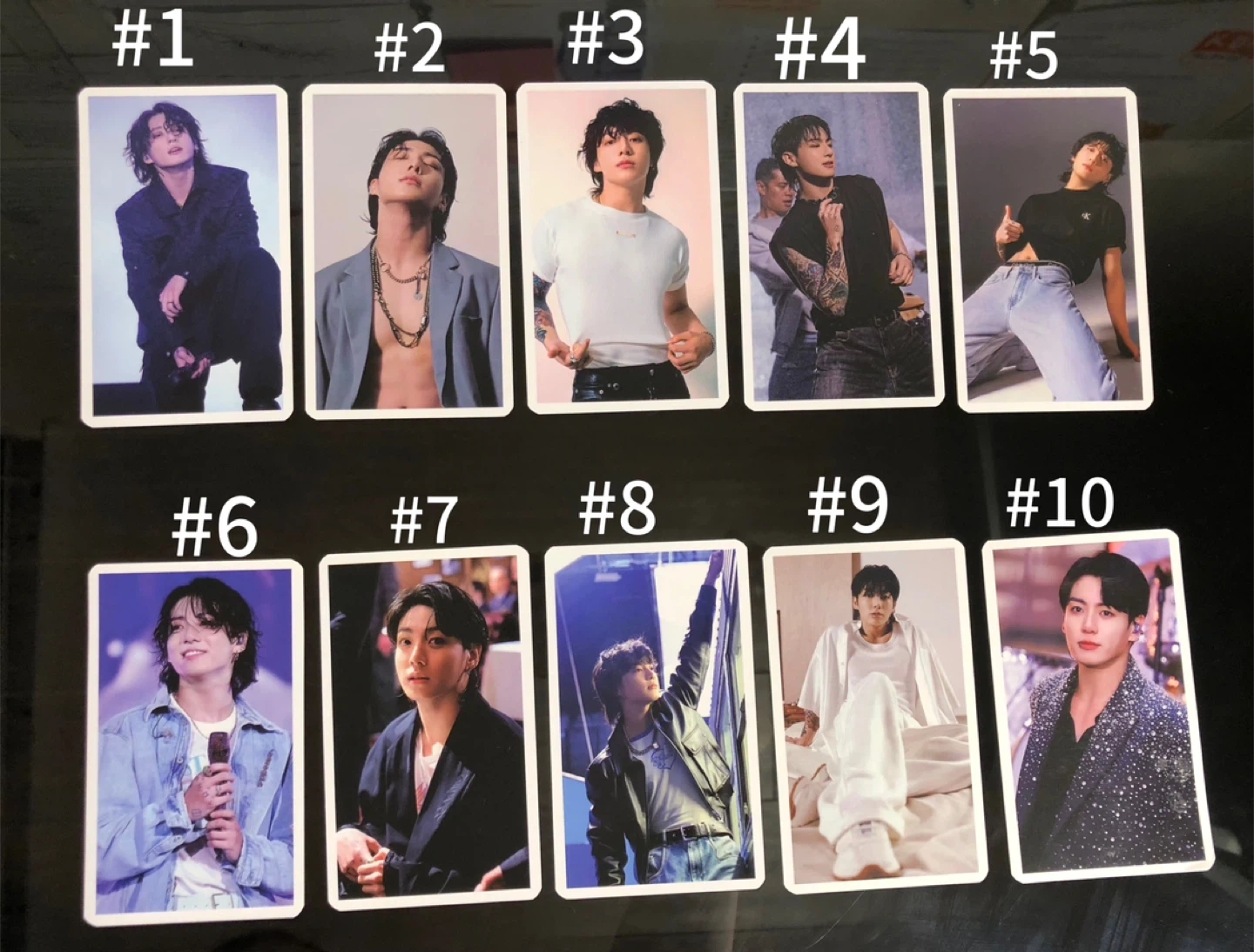 Selling a collection of BTS Jungkook special photo cards $0.50/card. These cards feature various images of Jungkook from different eras and photoshoots. Perfect for any ARMY looking to add to their collection!