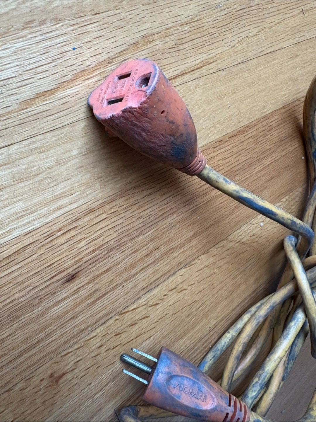 Selling a used extension cord. It shows signs of wear and use, as you can see in the photos. Still functions as intended. 5 meters length, 15 ft . Pick up at Morley trail NW