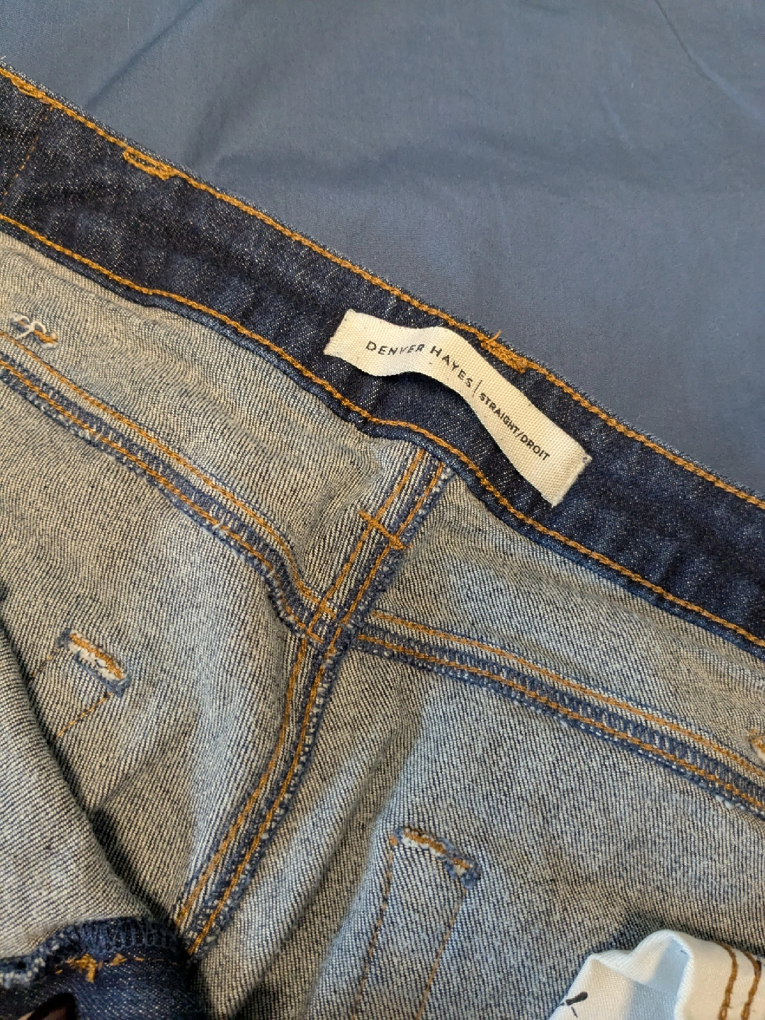Here are some denim shorts from Denver Hayes! They are a size 38 and are in great condition. They're made of 99% cotton and 1% spandex for a comfortable fit.