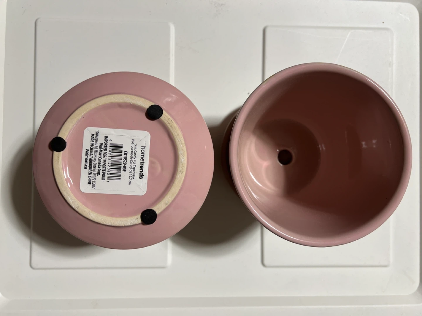 Selling two hometrends pink ceramic pot planters. Each pot is 5inch. They're in great condition and ready for your favourite plants!