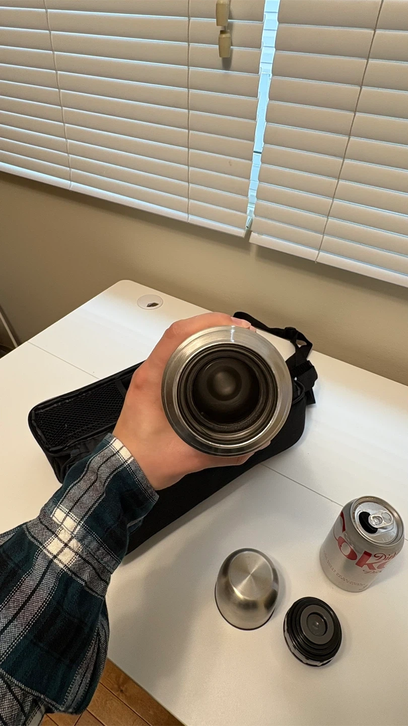 This is a stainless steel thermos travel bottle set that comes with a convenient carrying bag. Perfect for keeping your drinks hot or cold on the go!
