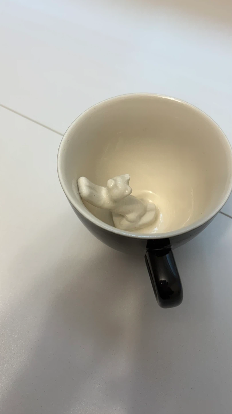 Selling a cute Creature Cups mug! It's black on the outside and has a little cat figurine inside. Great for a fun cup of coffee or tea!
